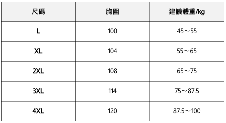 此處給出的參考尺寸表只是一個標準指南