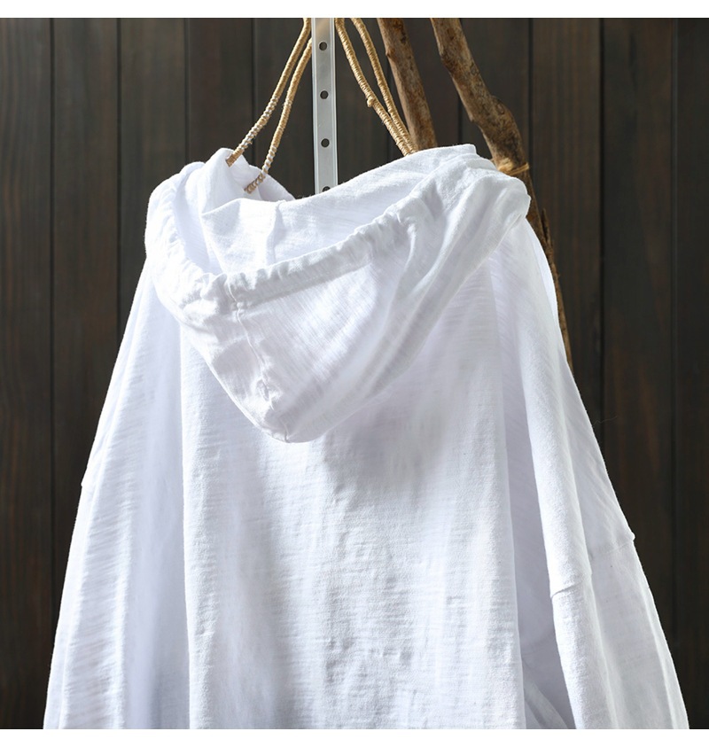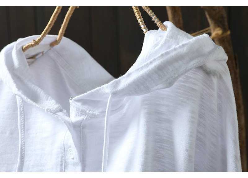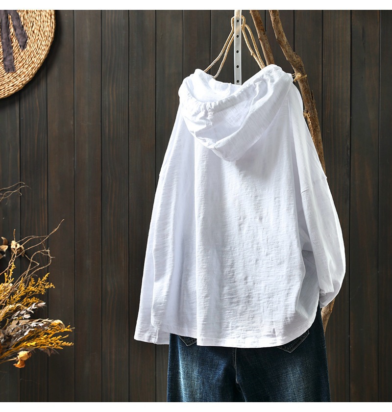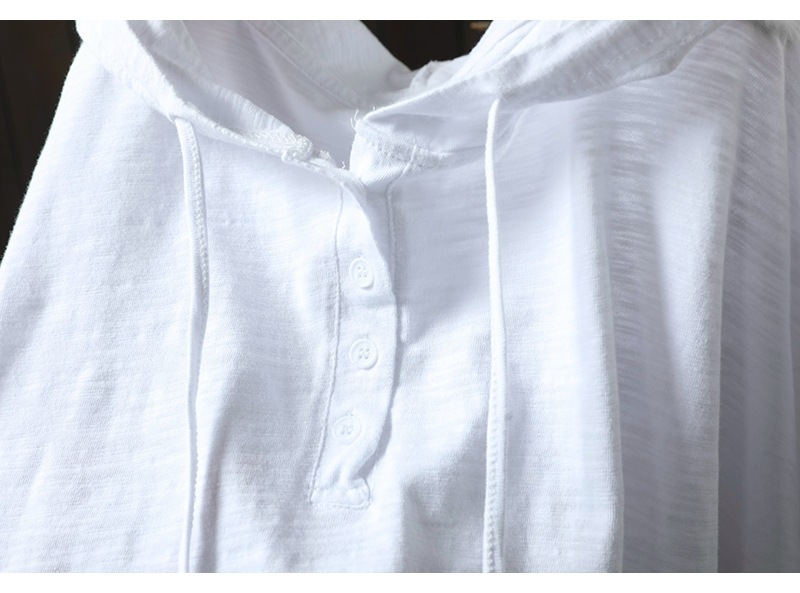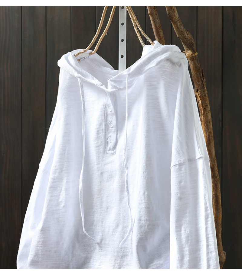 竹節棉連帽寬鬆休閑遮肉套頭長袖T恤