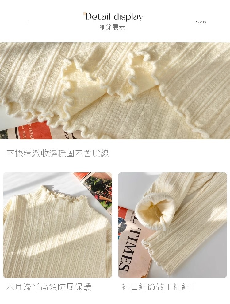 精緻木耳邊半高領修身內搭軟糯針織打底衫