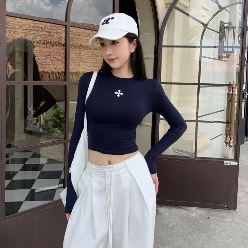 美式ig風時尚潮流辣妹修身顯瘦長袖T恤