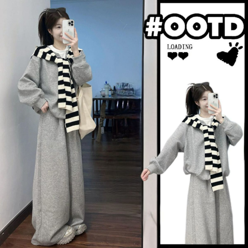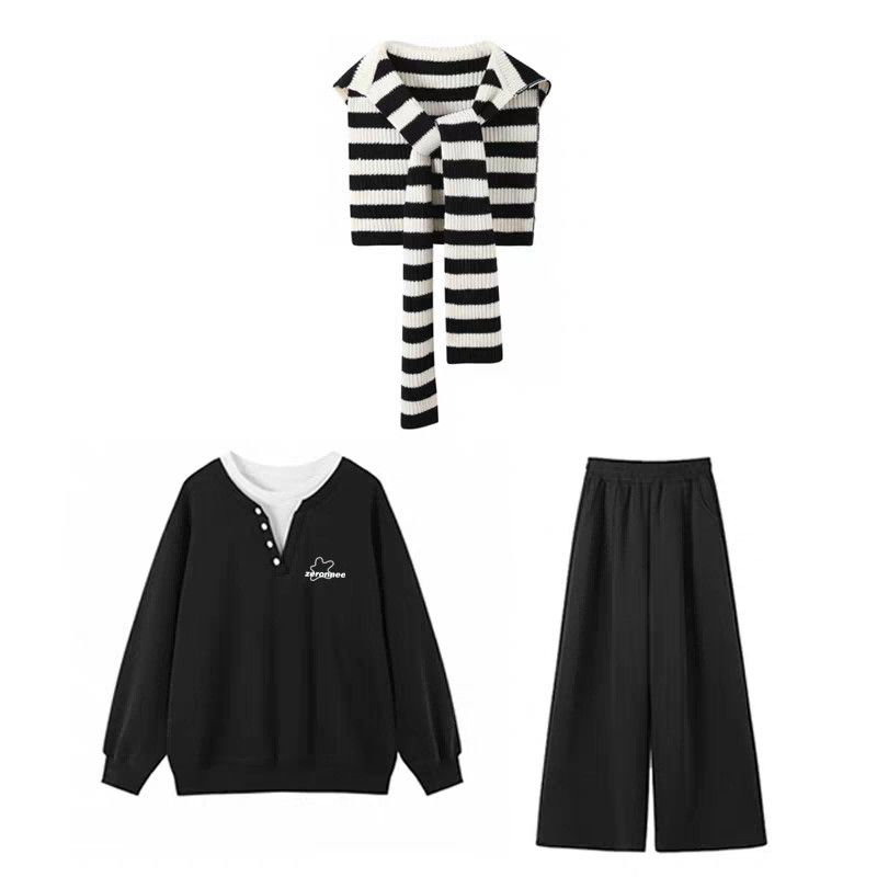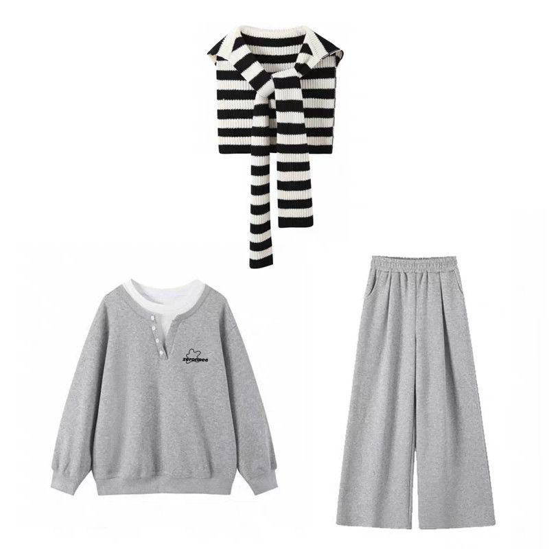 【單件/套裝】條紋披肩+慵懶風衛衣+闊腿褲三件套裝