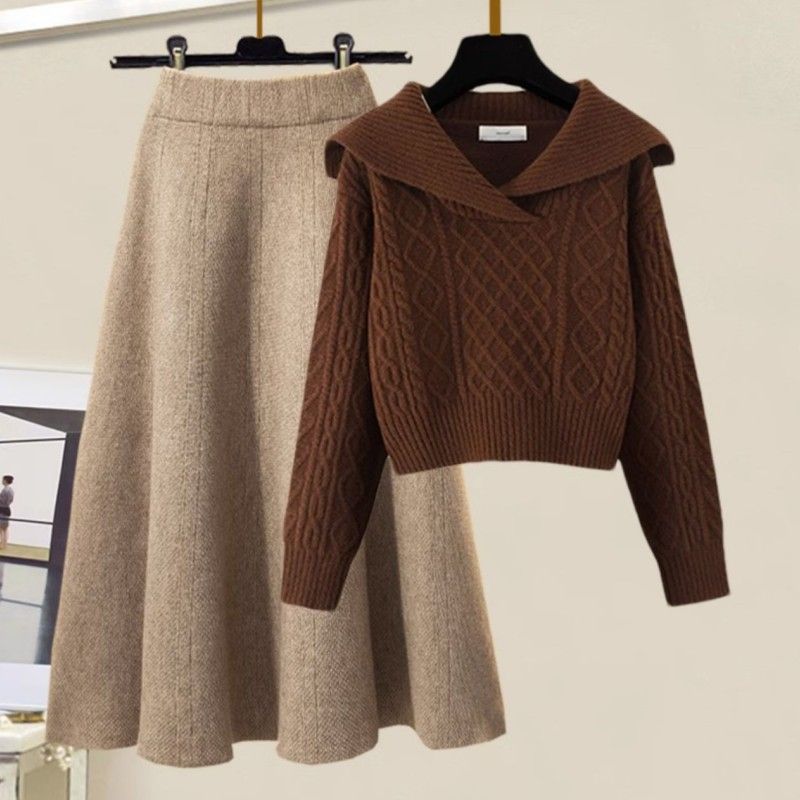 【整套】美拉德氛圍感針織衫+韓系短裙兩件套