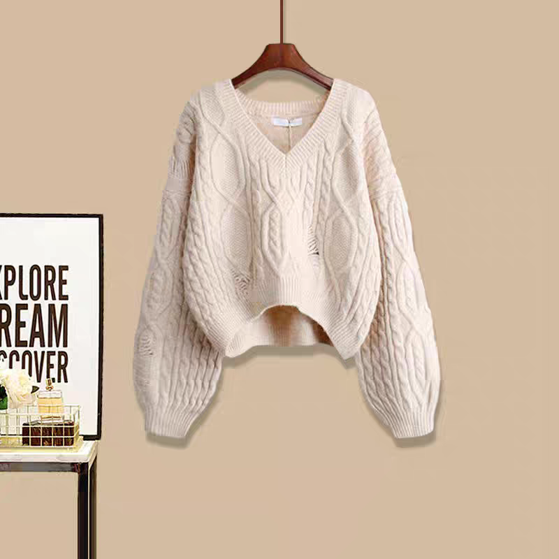 【整套】美拉德氛圍感針織衫+韓系短裙兩件套