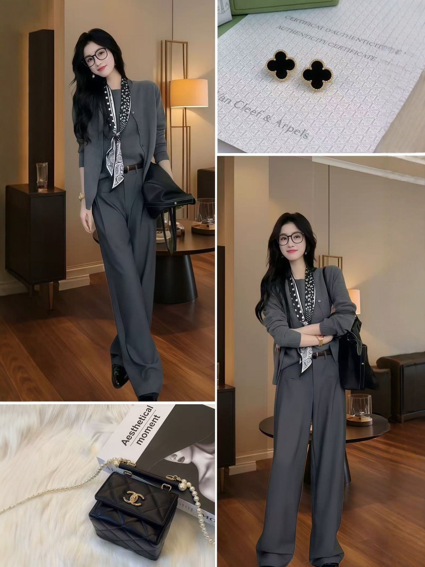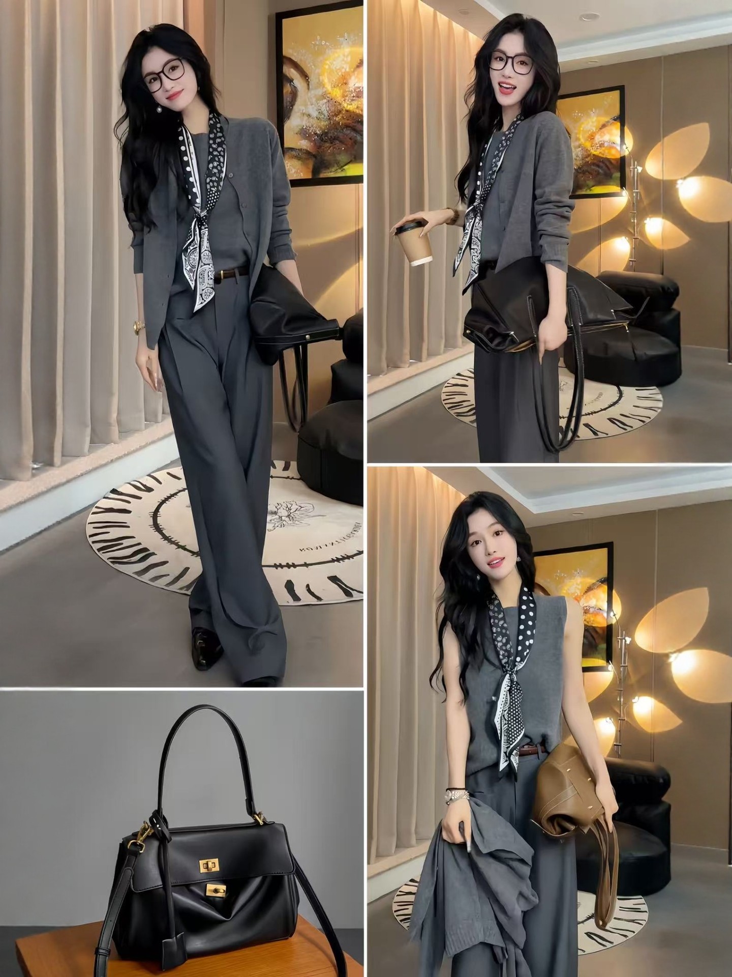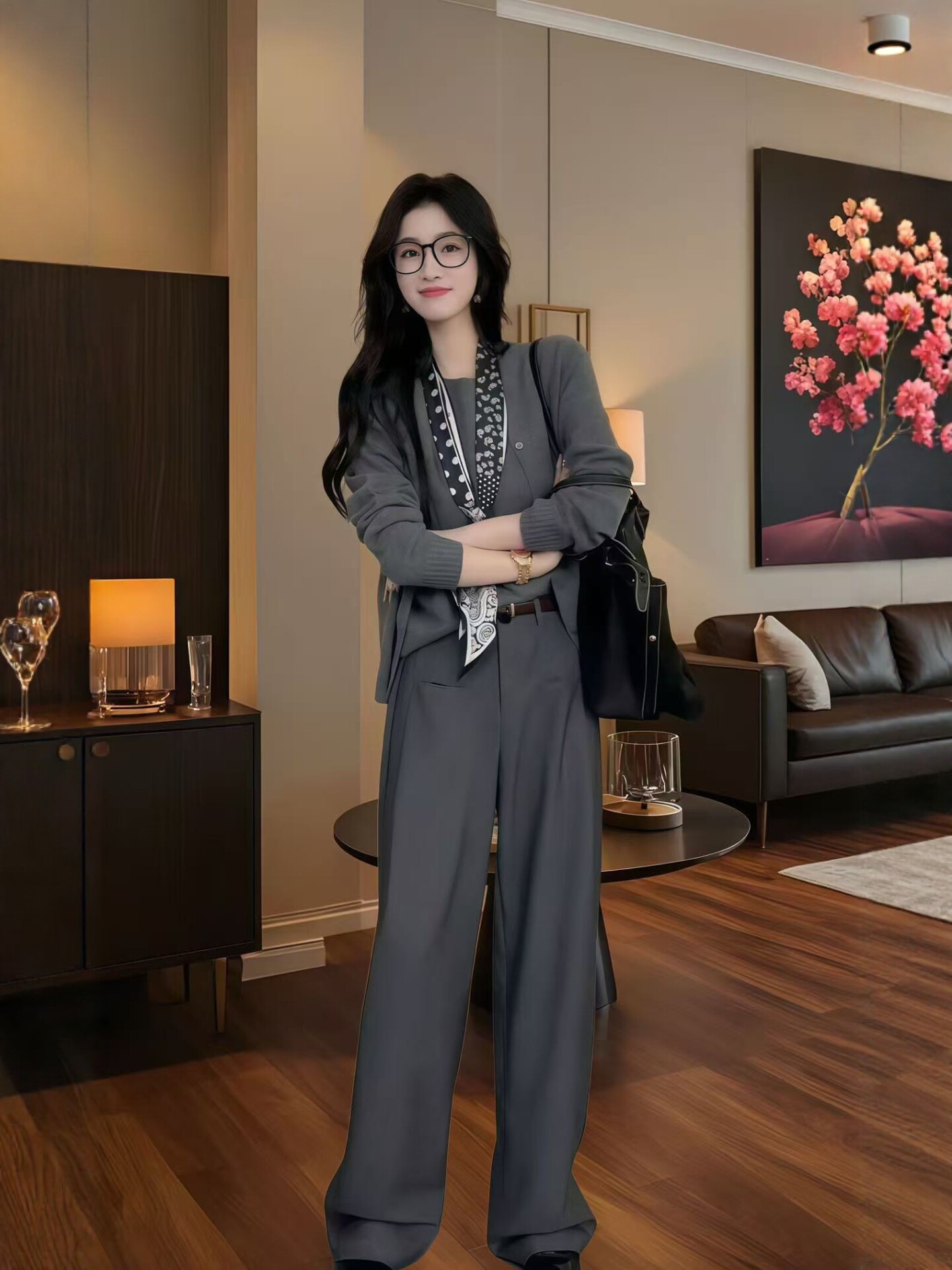 【單件/套裝】韓版慵懶顯瘦開衫+背心+休閒長褲三件套
