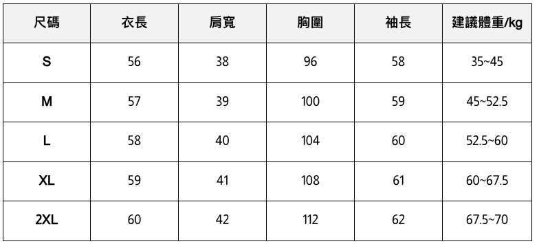 - 此處給出的參考尺寸表只是一個標準指南