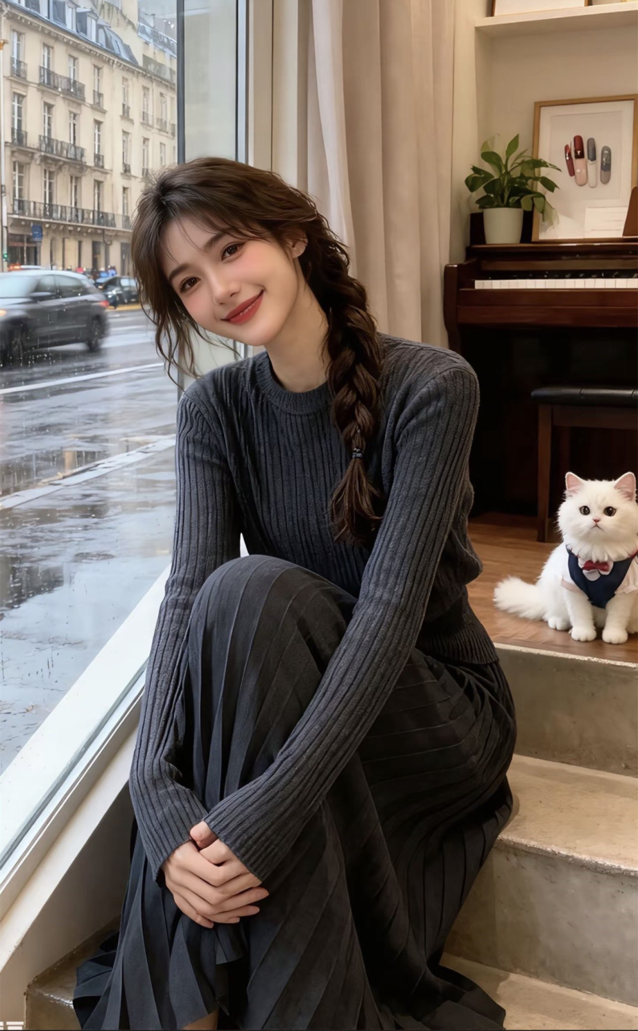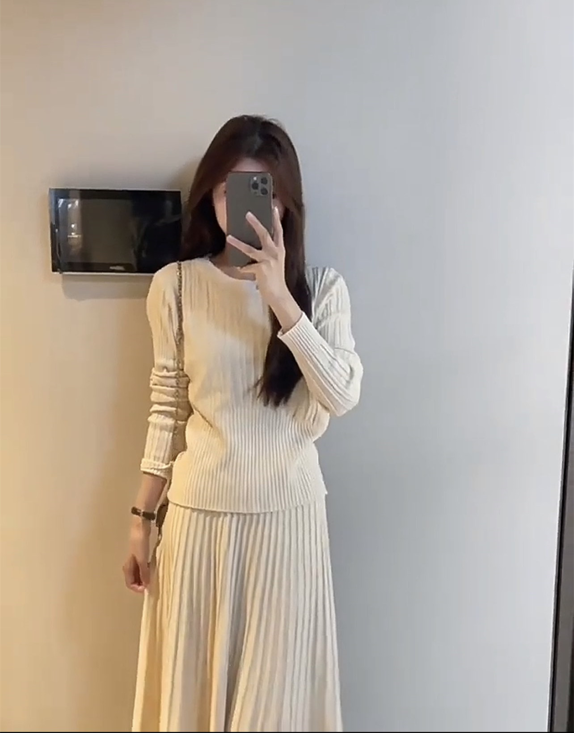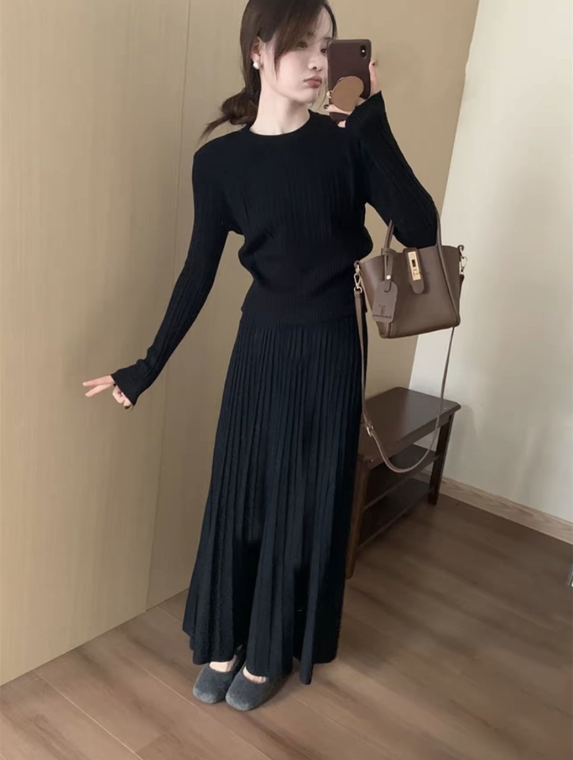 【整套】法式高級感收腰顯瘦針織毛衣+氣質半身長裙兩件套裝