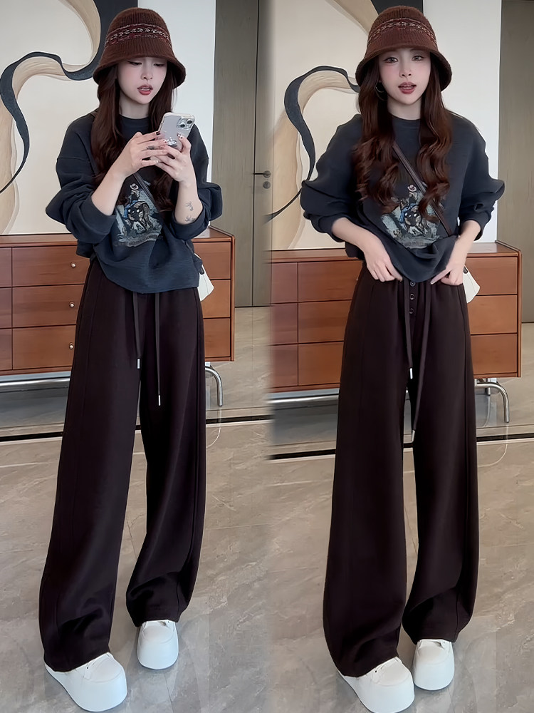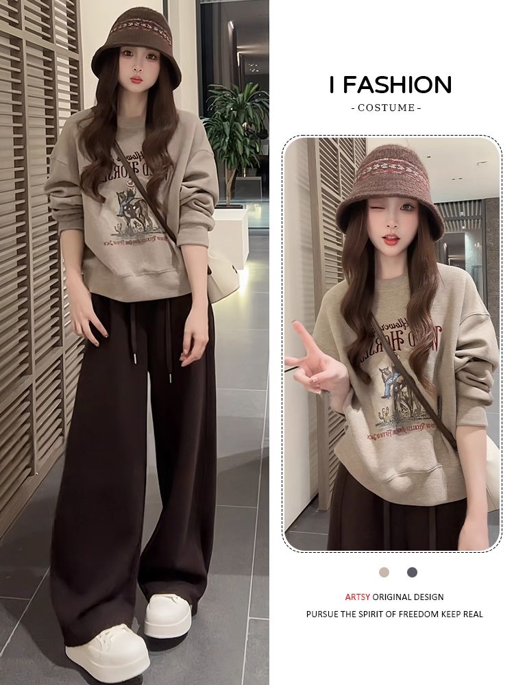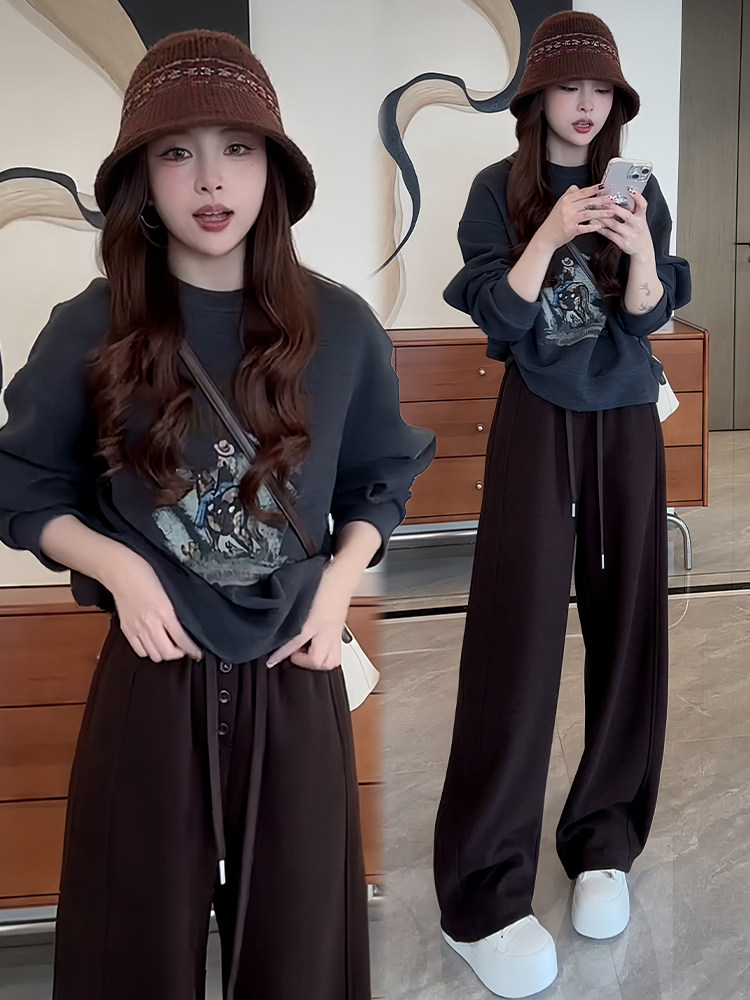 【兩件套】深灰色上衣+咖色褲子