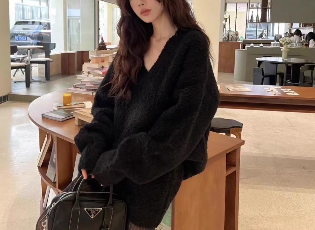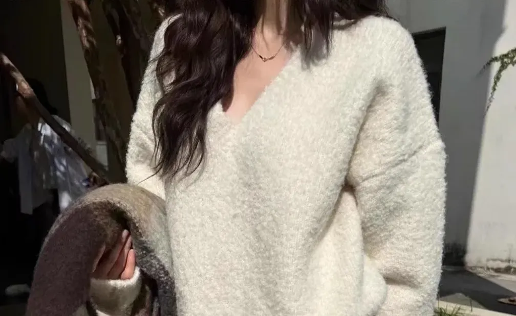 素色寬鬆大碼韓版百搭圓領針織衫