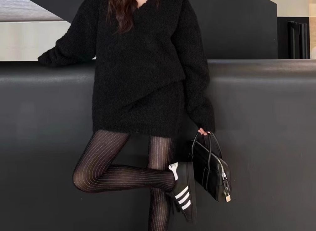 【單件/套裝】小香風交叉毛衣+黑色洋裝兩件套裝