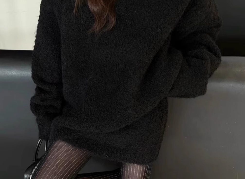 寬鬆慵懶連帽刷毛仿皮草加厚羊羔毛絨外套