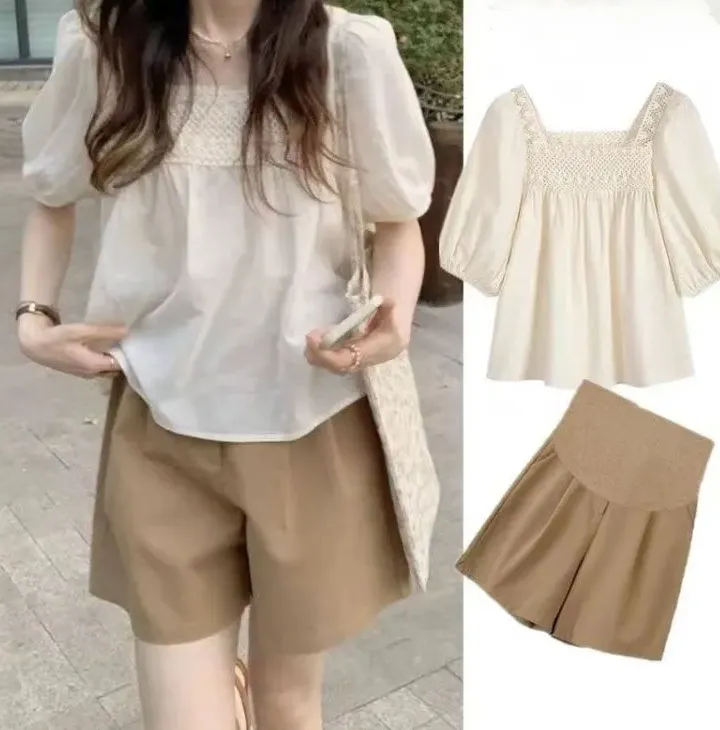 注意:套裝中的短褲,腰腹部是托腹的設計,更適合孕期穿著,介意勿購!