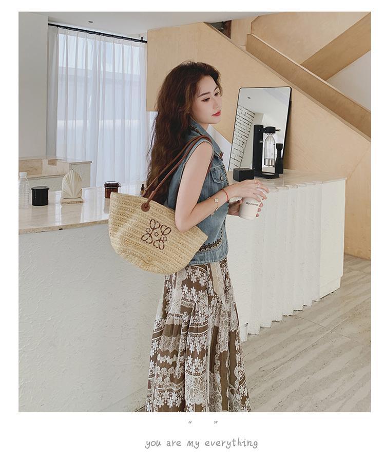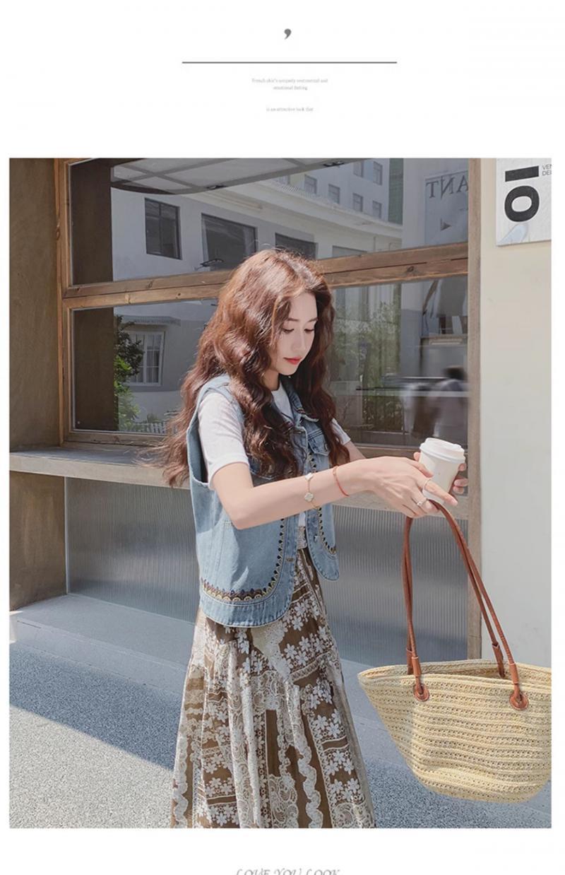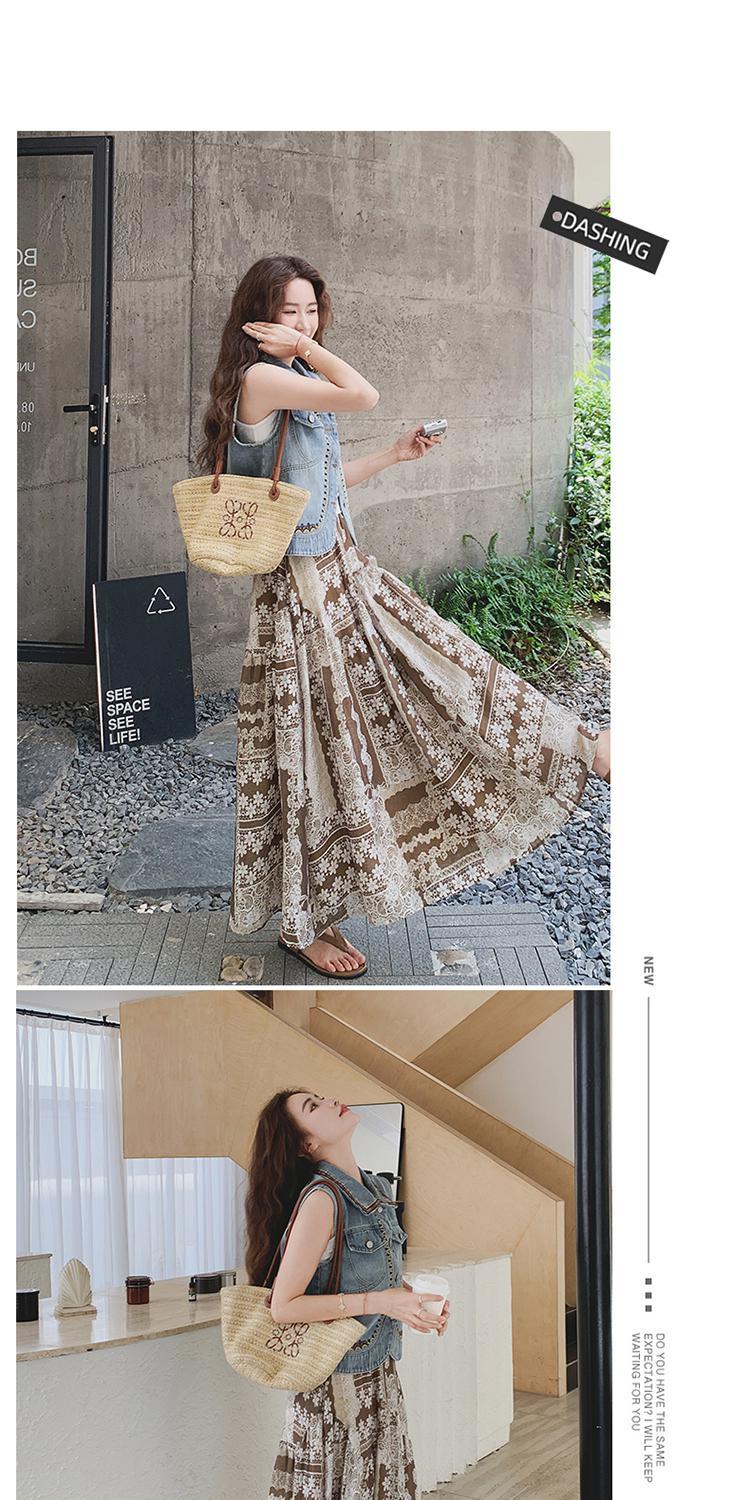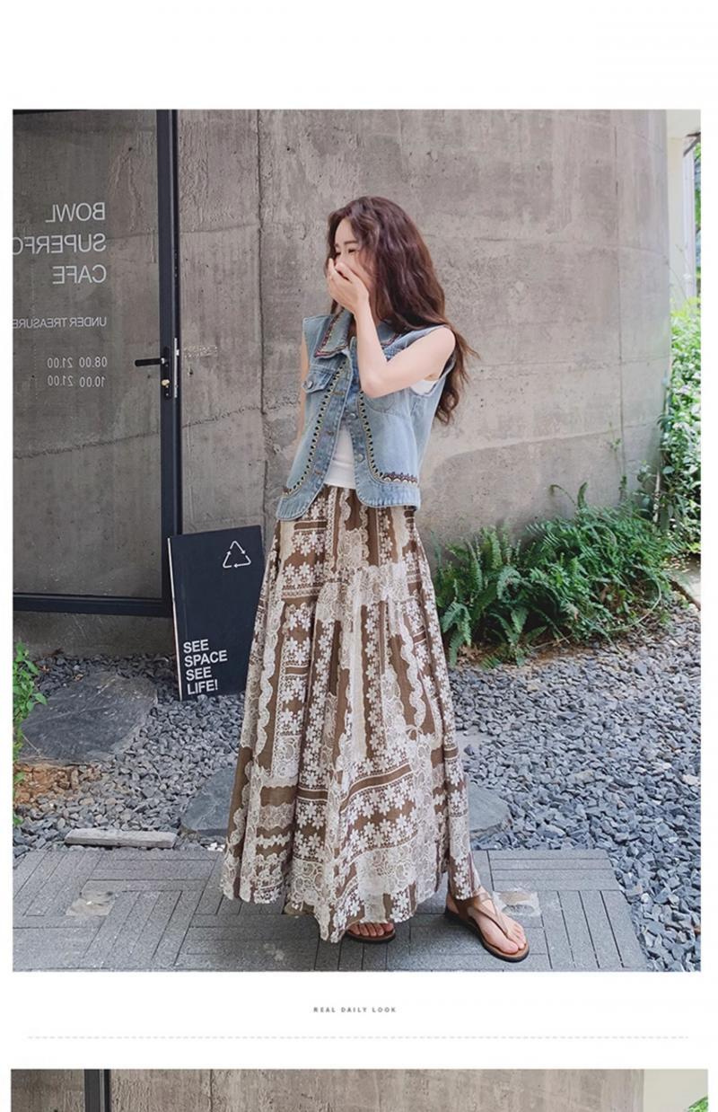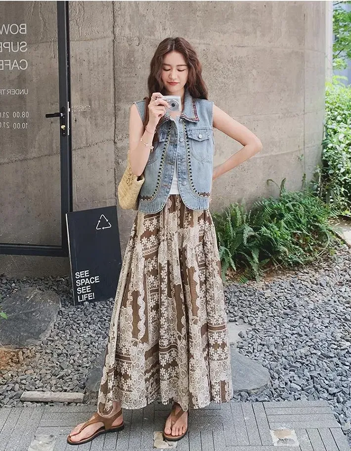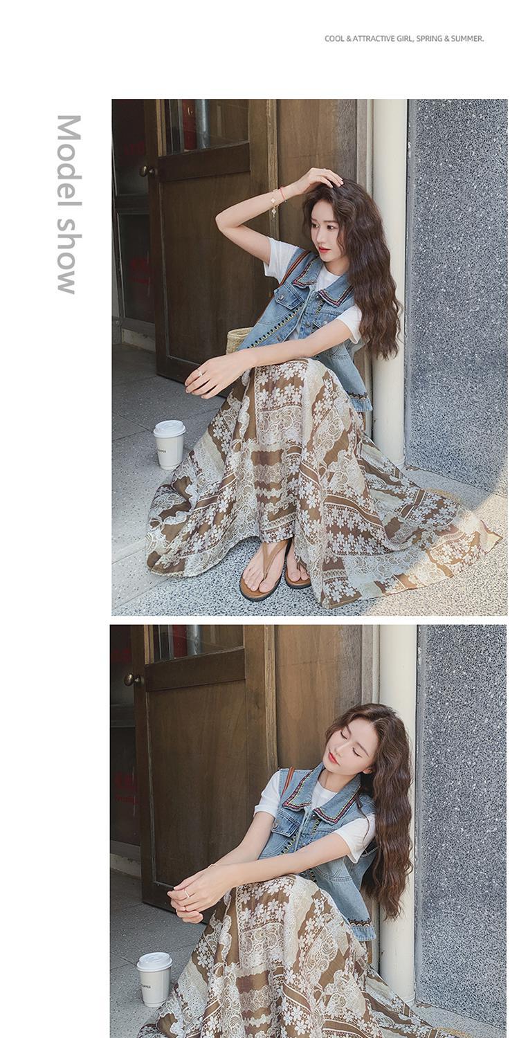 【單品/套裝】復古民族風刺繡牛仔馬甲半身裙兩件套裝