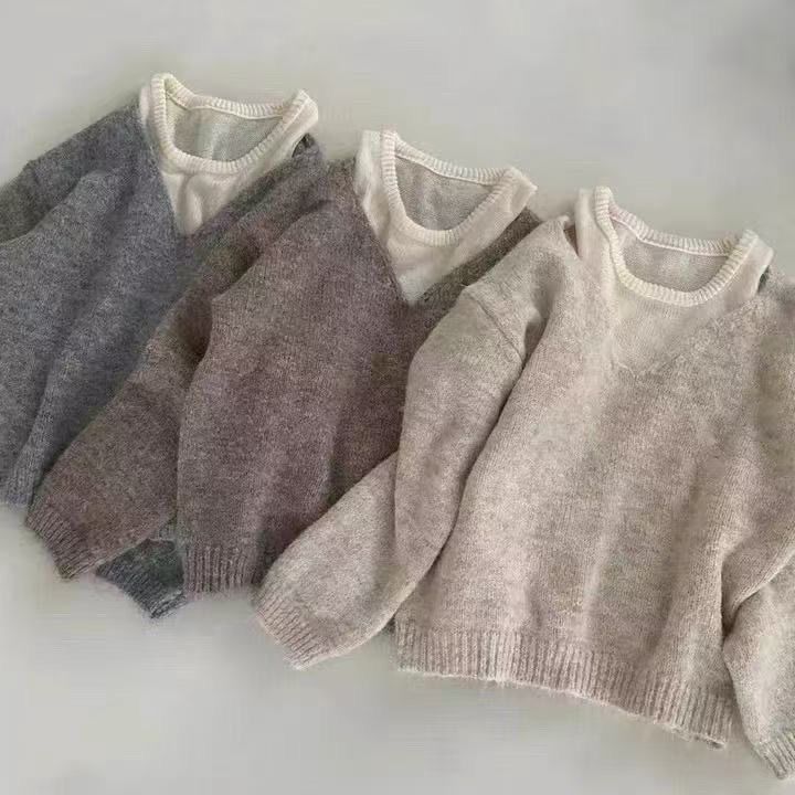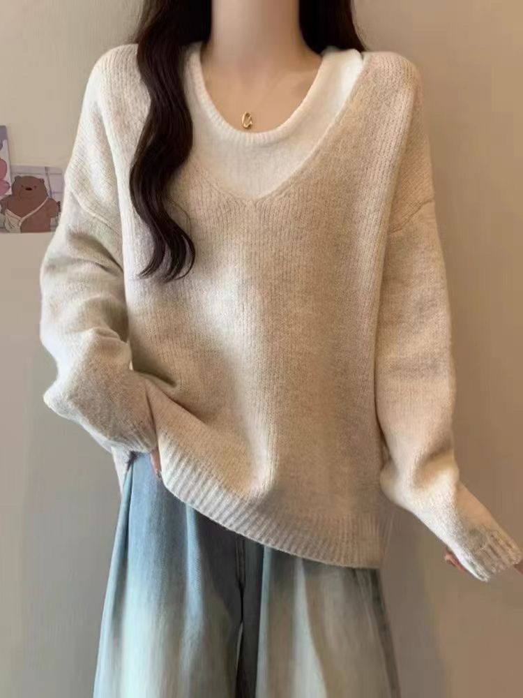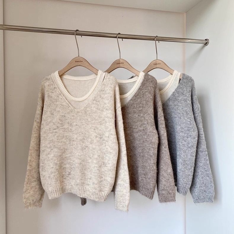 韓系卷边簡約慵懒风宽松顯瘦針織衫