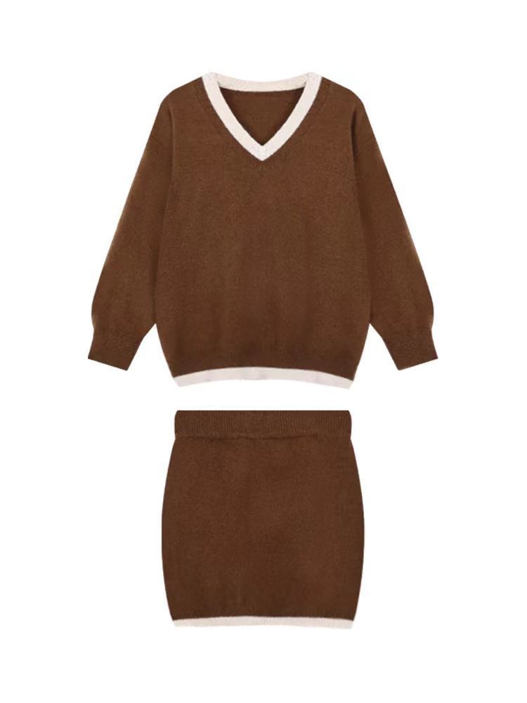 【整套】美拉德氛圍感針織衫+韓系短裙兩件套