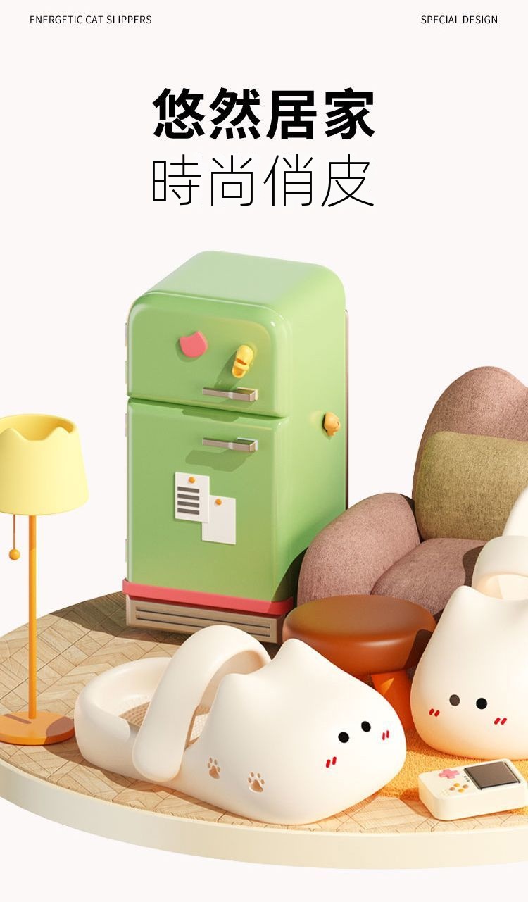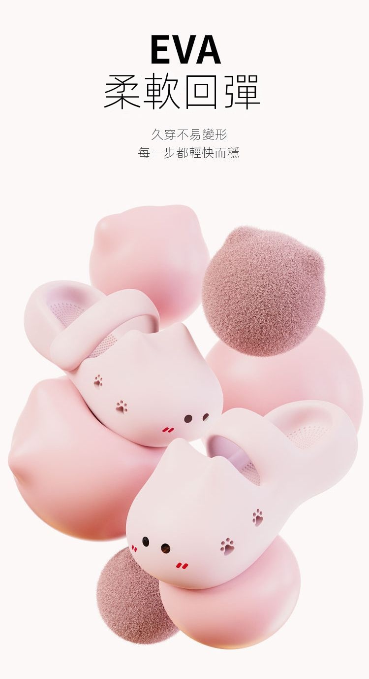 可愛萌防撞厚底踩屎感包頭防滑可外穿貓咪涼拖鞋-HaloBless
