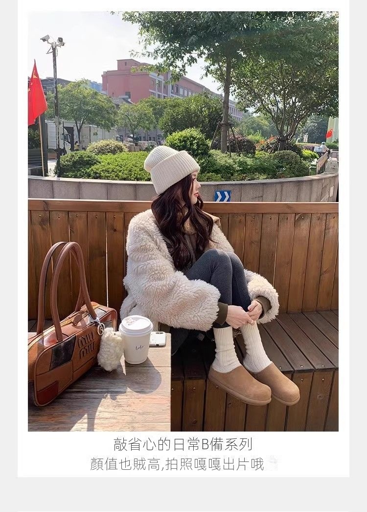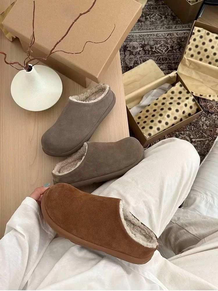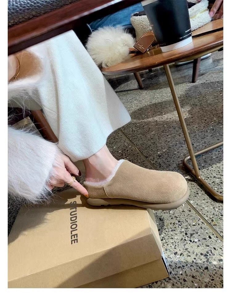 皮毛一體外穿厚底刷毛包頭勃肯鞋