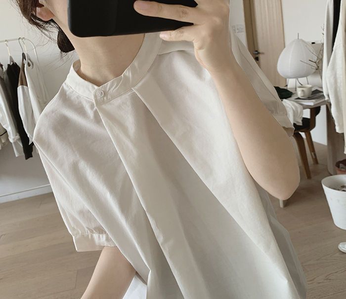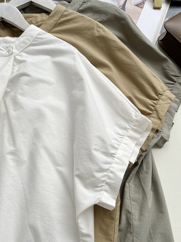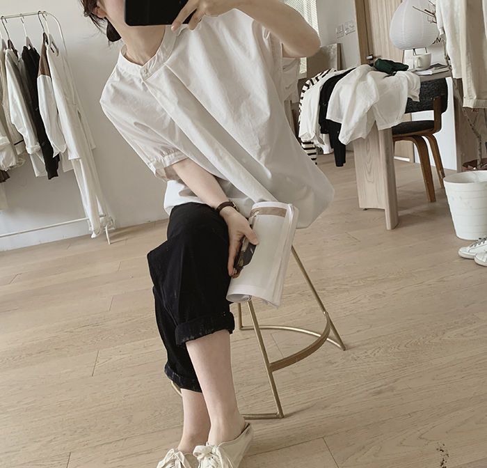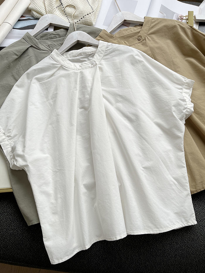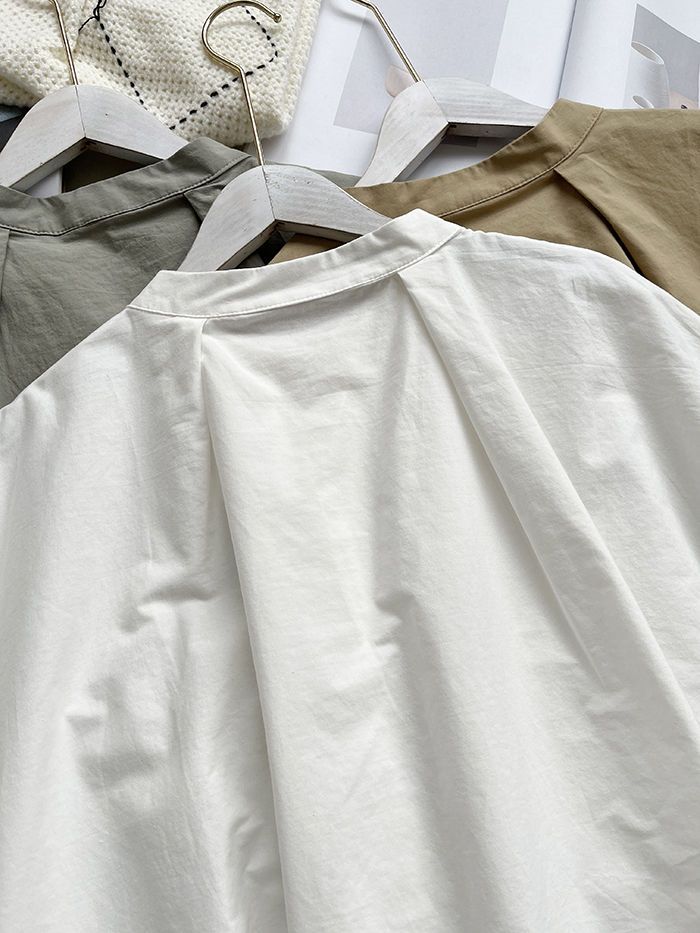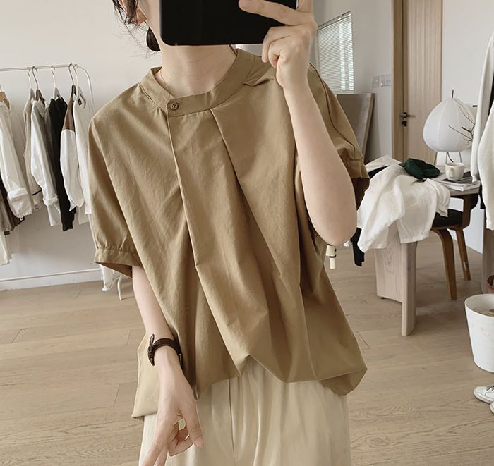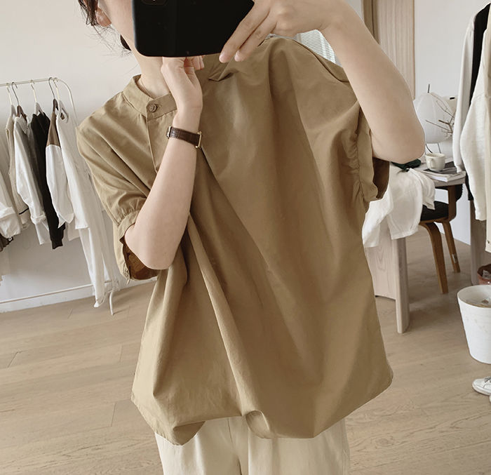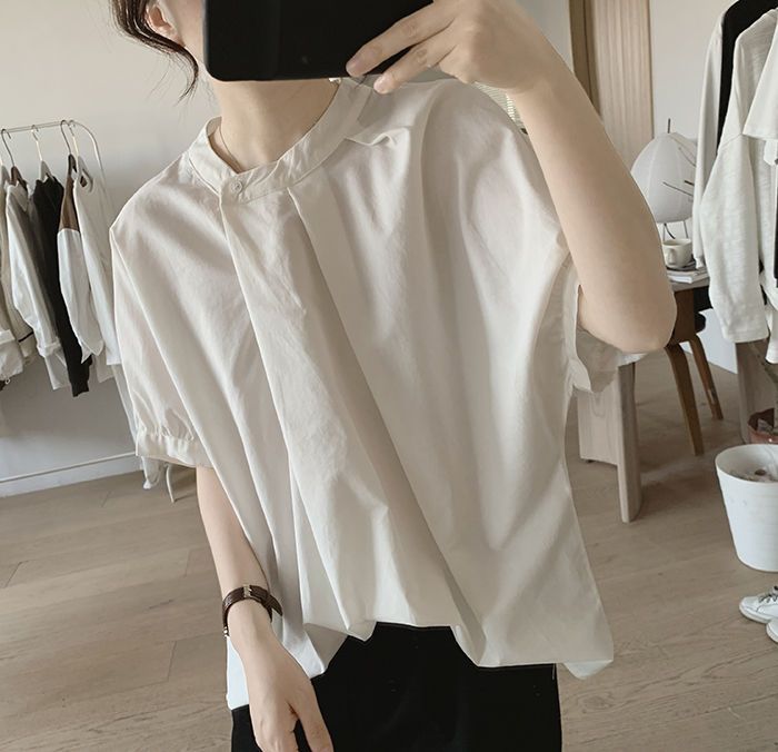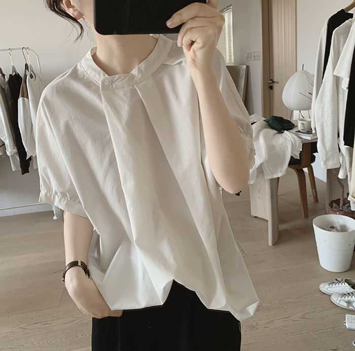 簡約小眾設計感不規則褶皺寬鬆顯瘦圓領襯衫