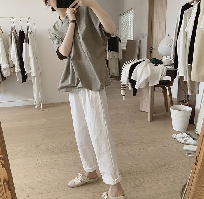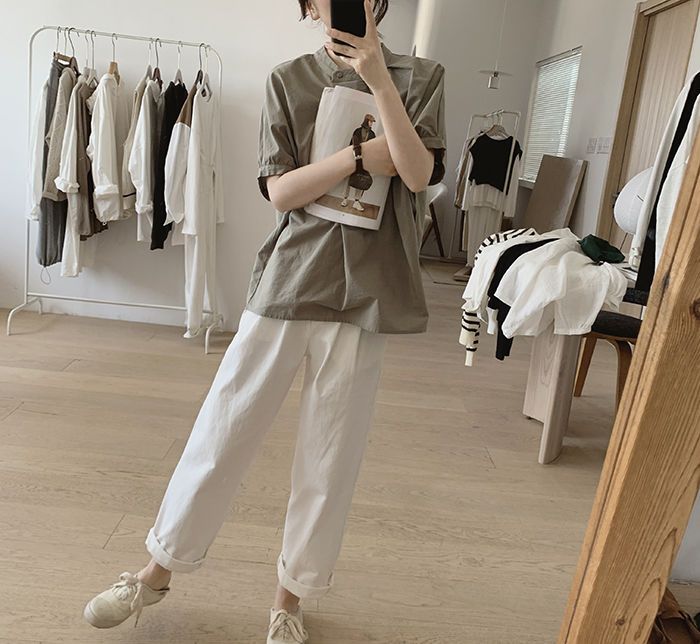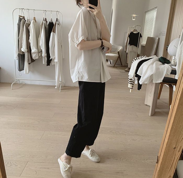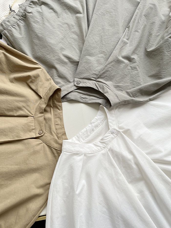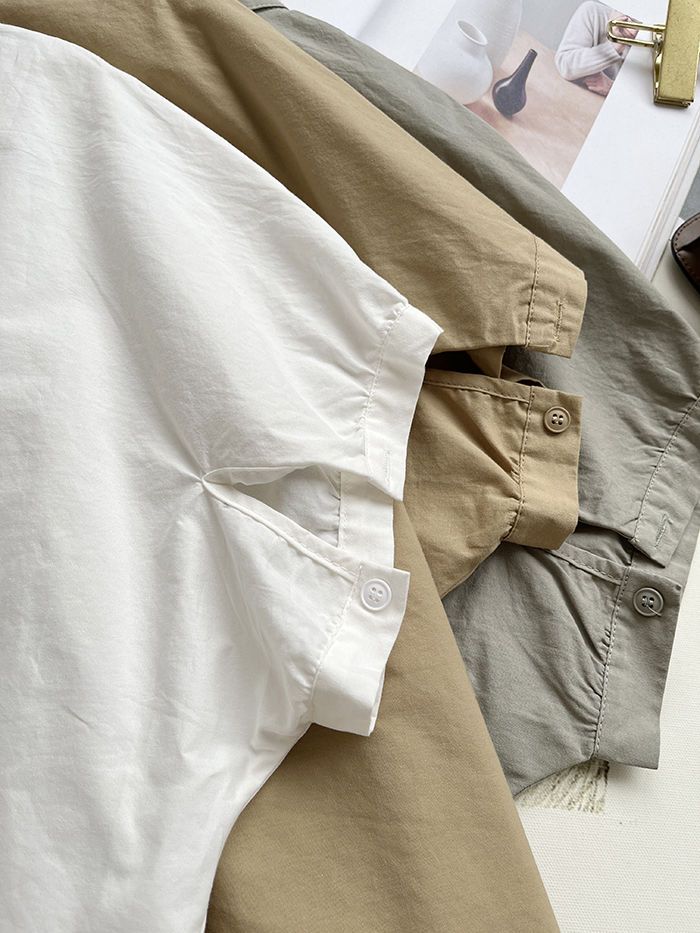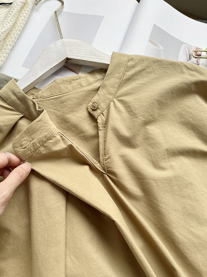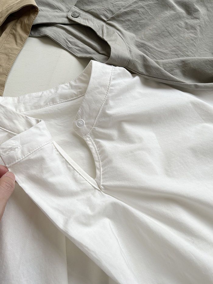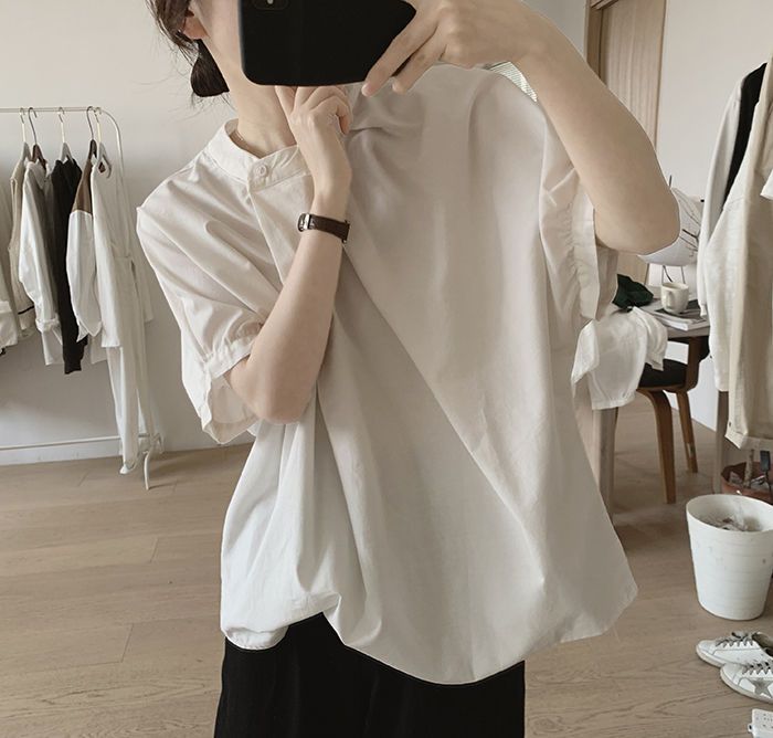 簡約小眾設計感不規則褶皺寬鬆顯瘦圓領襯衫