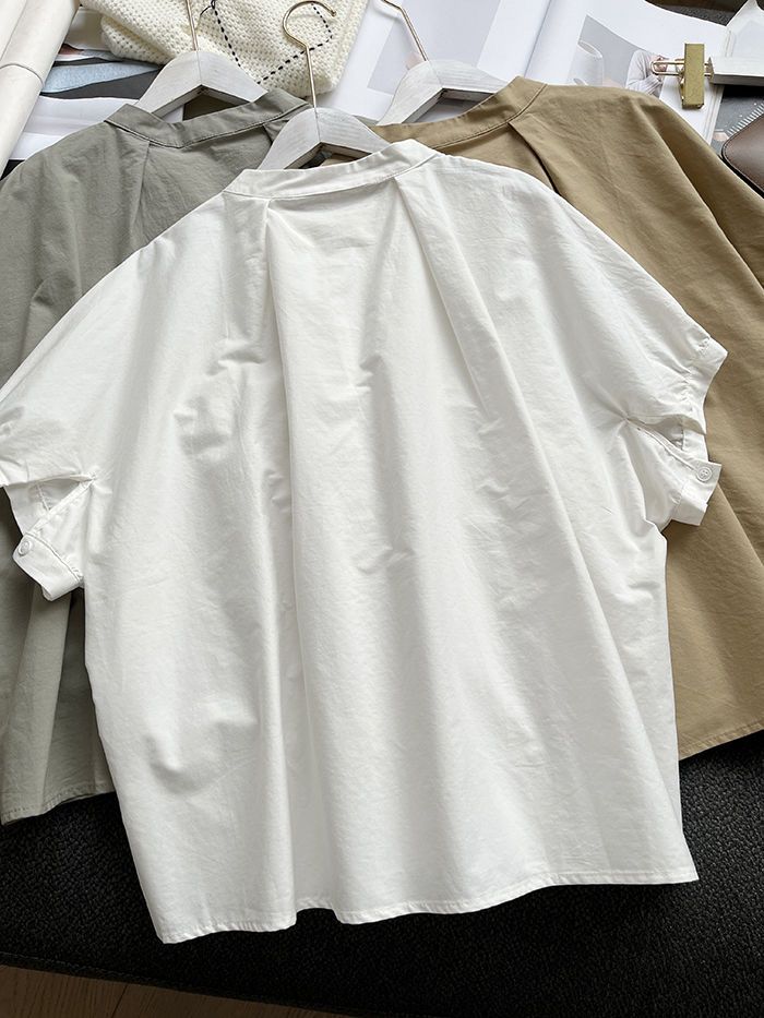 設計感不規則褶皺寬鬆顯瘦圓領襯衫