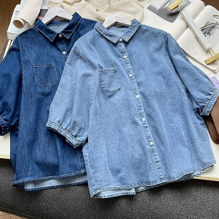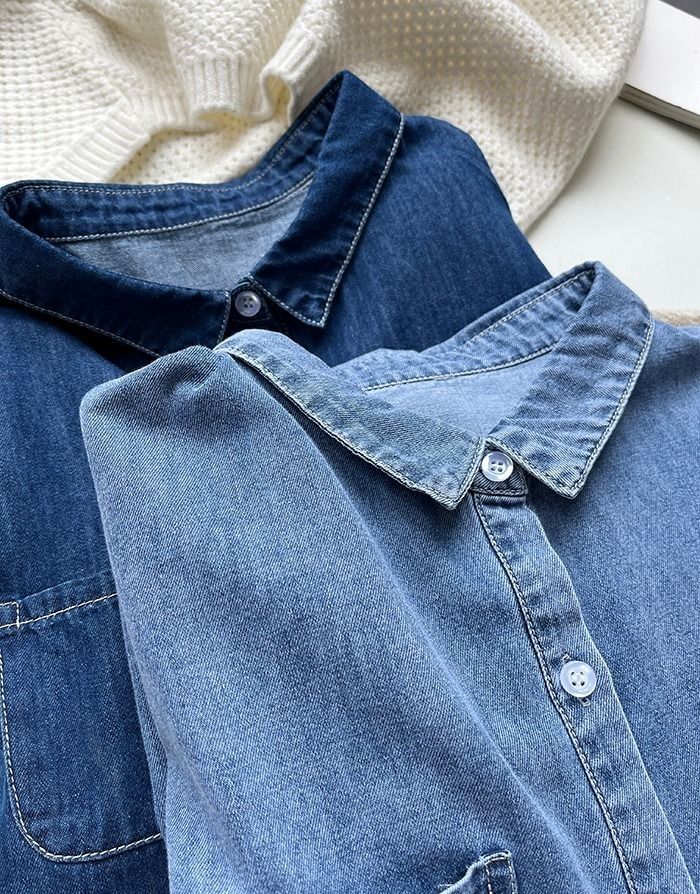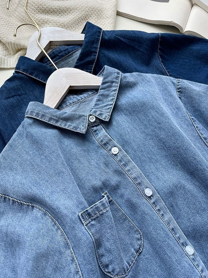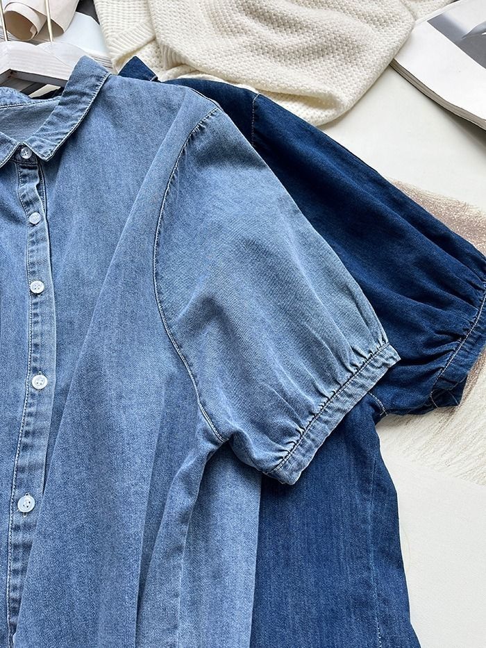復古簡約寬鬆顯瘦燈籠袖牛仔襯衫