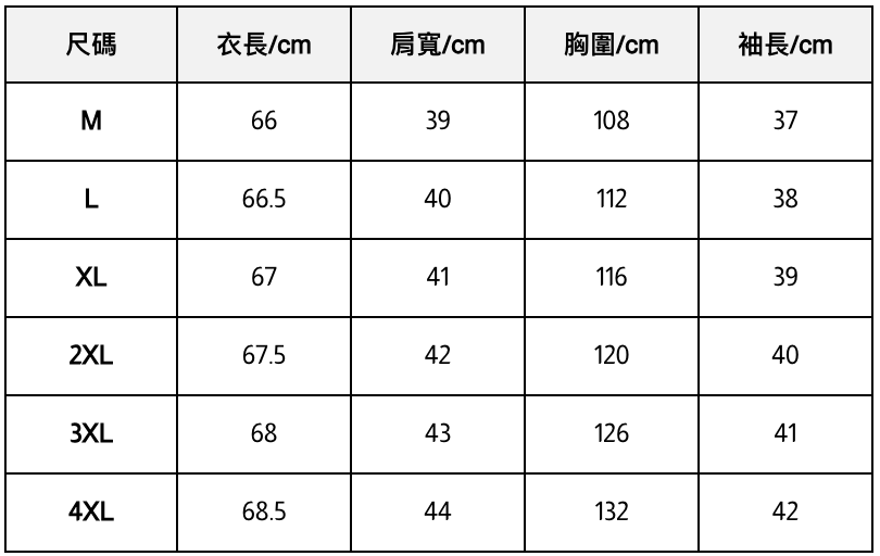 此處給出的參考尺寸表只是一個標準指南