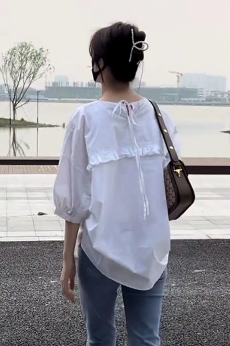 寬鬆顯瘦大碼木耳邊不規則設計感襯衫