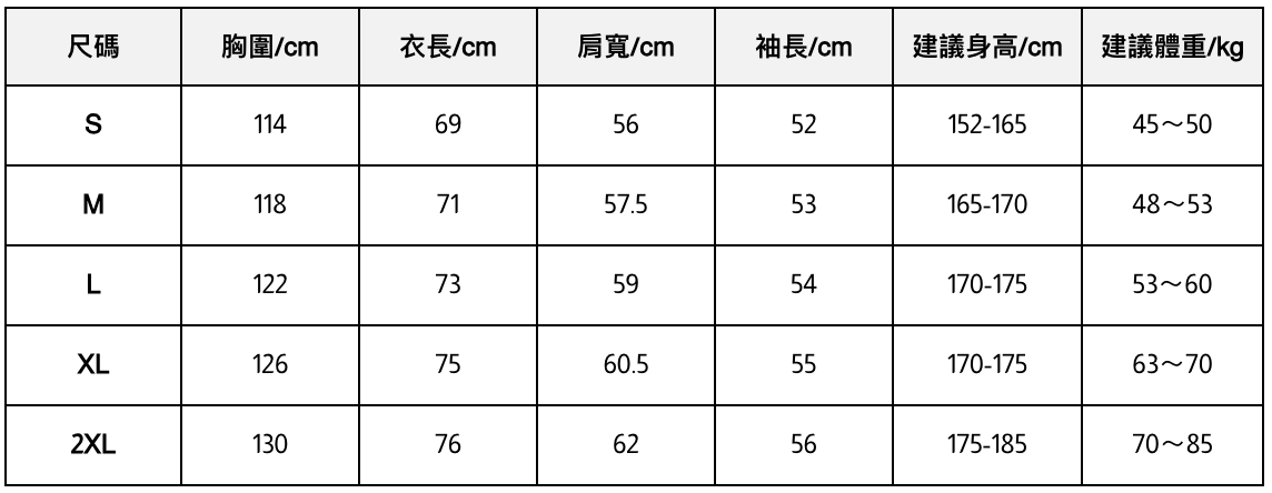 此處給出的參考尺寸表只是一個標準指南