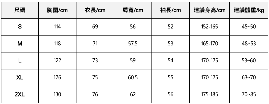 此處給出的參考尺寸表只是一個標準指南