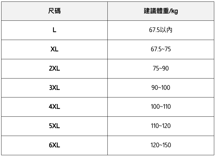 此處給出的參考尺寸表只是一個標準指南