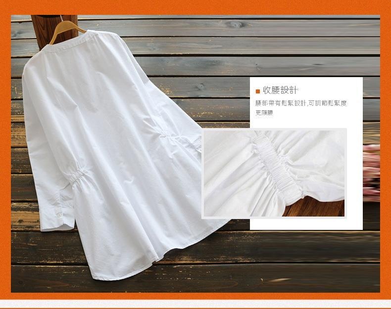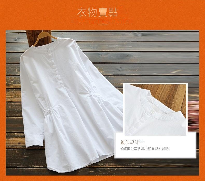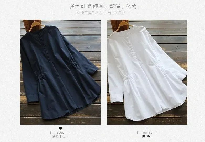 純棉寬鬆顯瘦圓領收腰時尚休閒復古襯衫