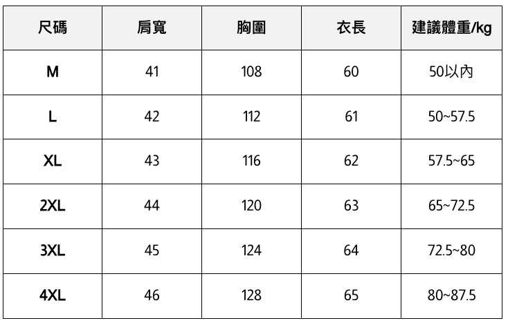 - 此處給出的參考尺寸表只是一個標準指南
