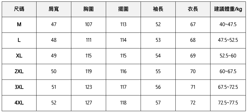 此處給出的參考尺寸表只是一個標準指南