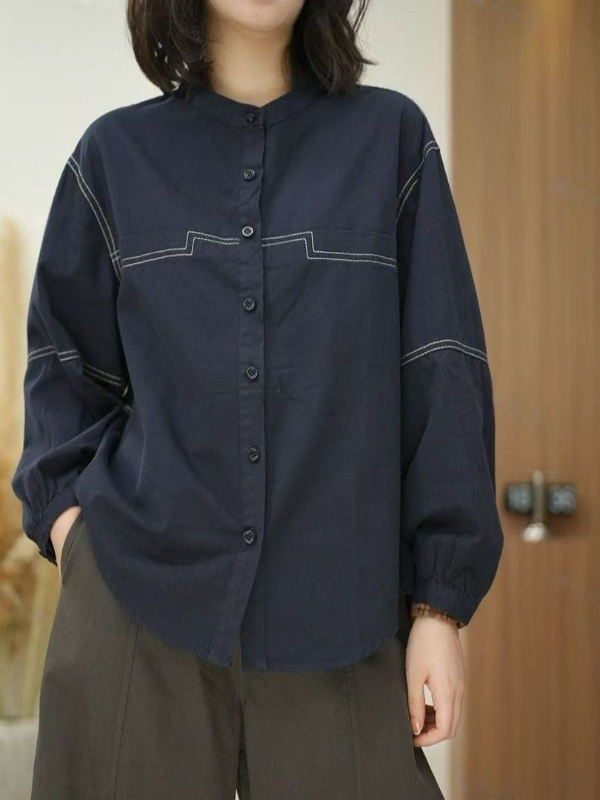 時尚明線設計顯瘦洋氣減齡休閑長袖襯衫