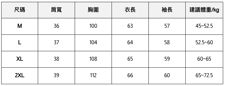 此處給出的參考尺寸表只是一個標準指南