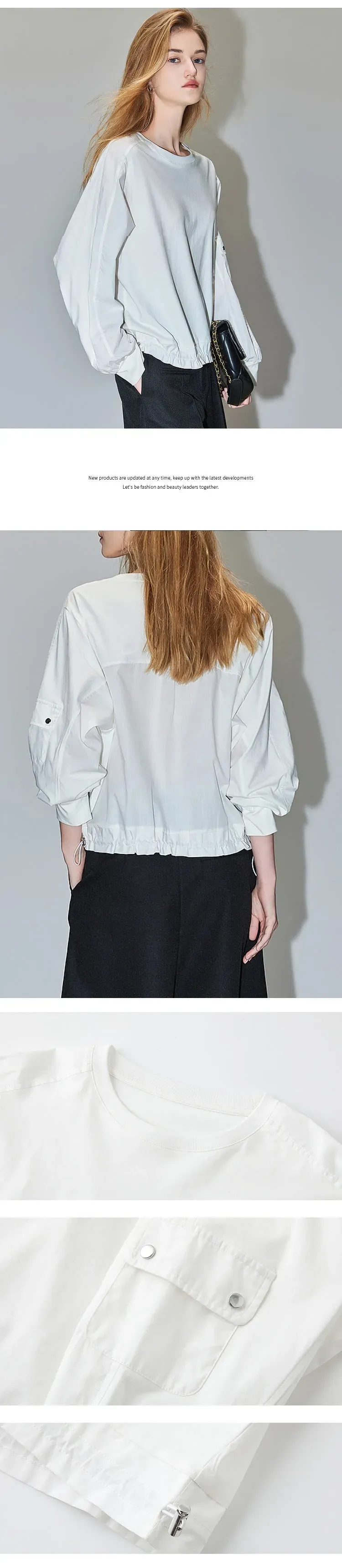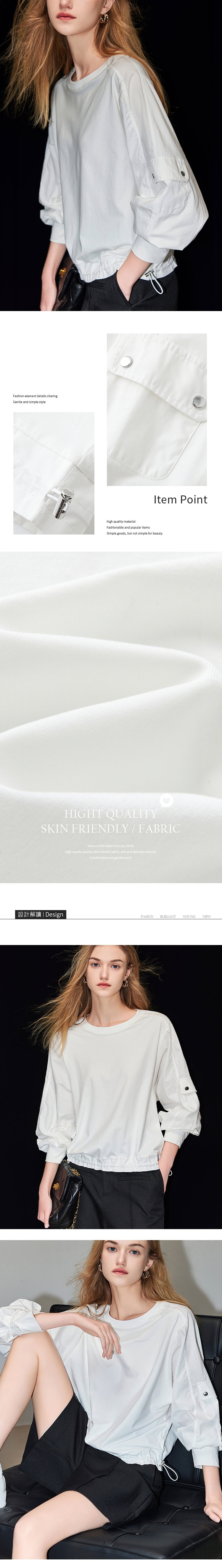 簡約風設計感時尚拼接下擺鬆緊襯衫