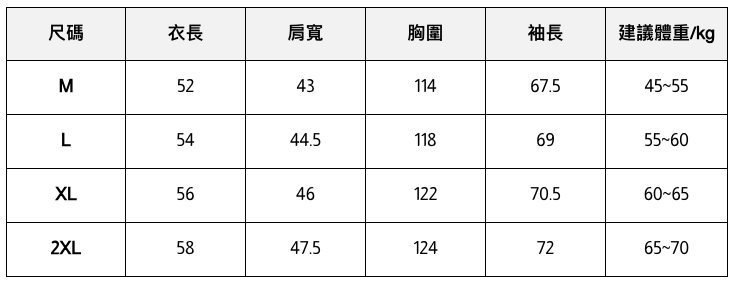 此處給出的參考尺寸表只是一個標準指南