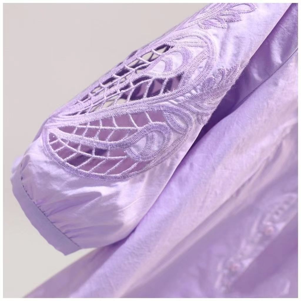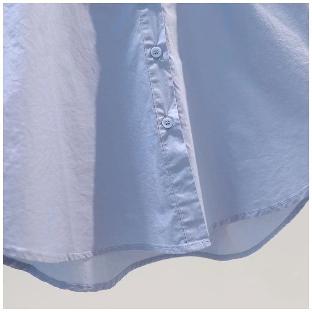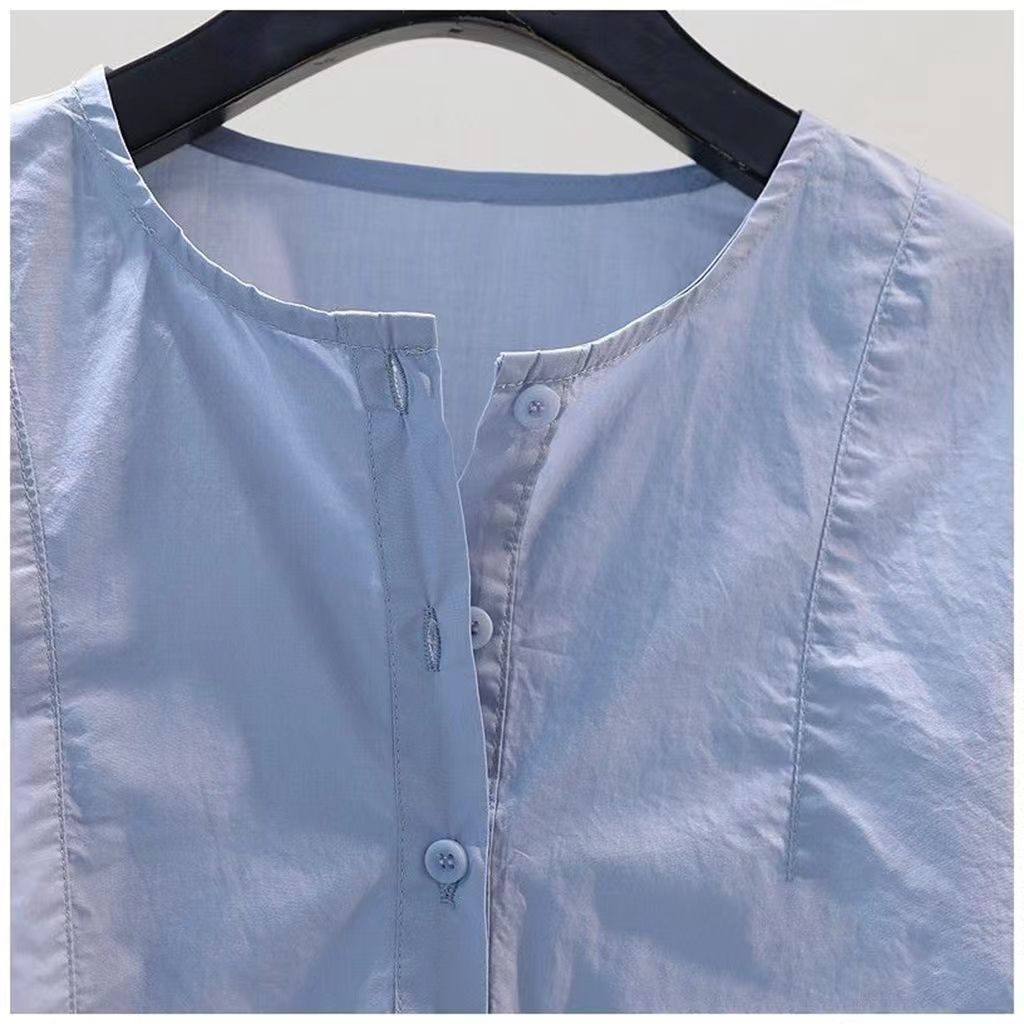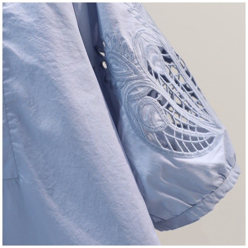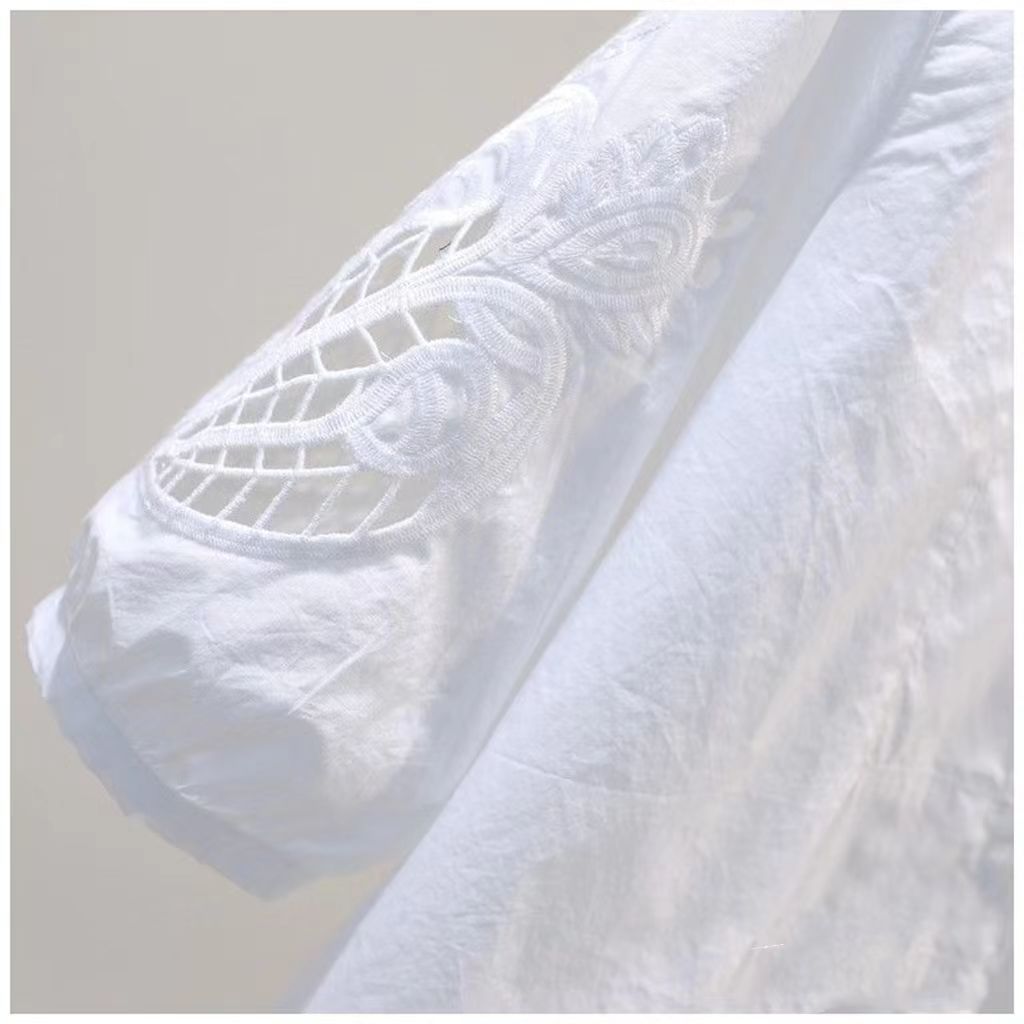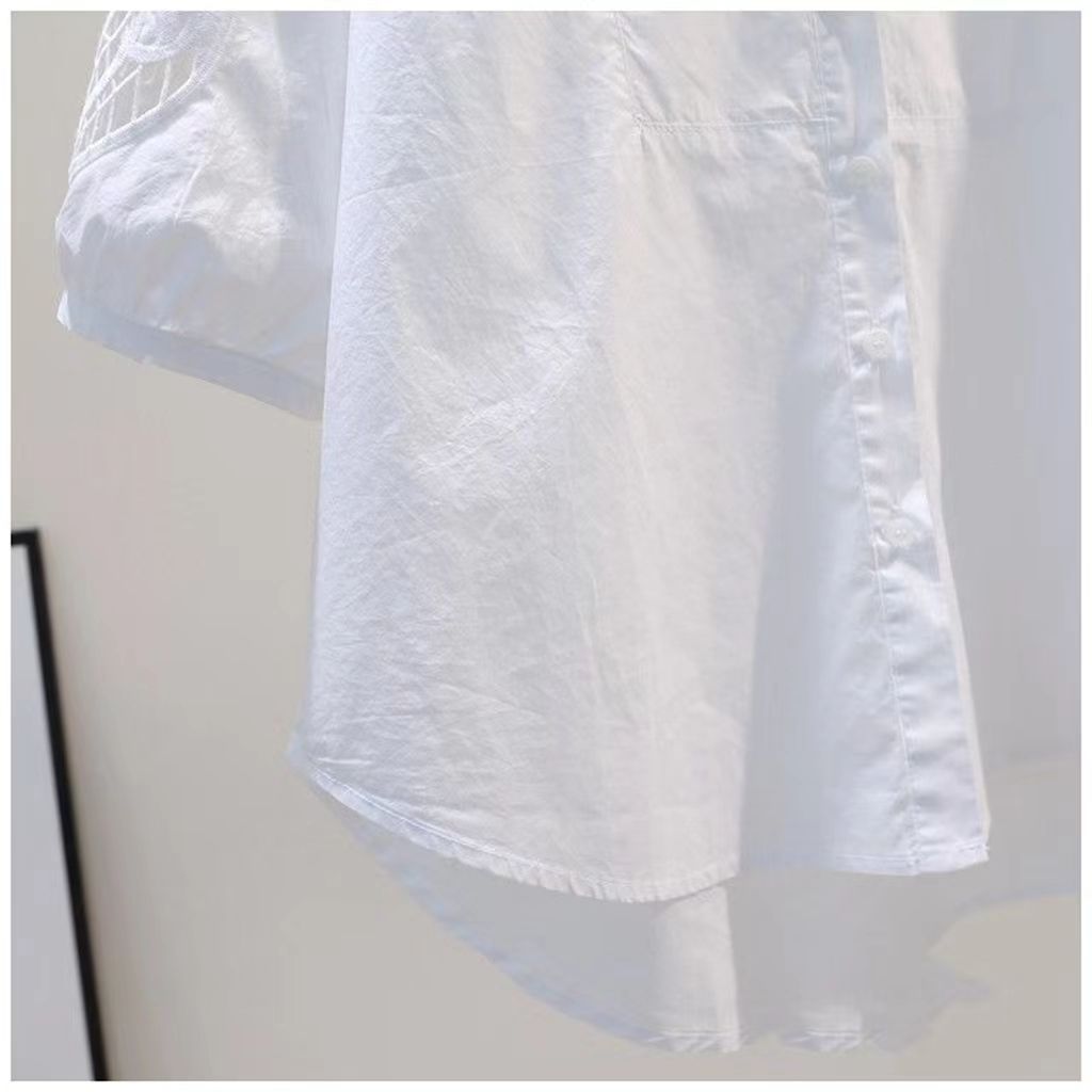 鏤空繡花設計感圓領寬鬆五分袖純棉襯衫