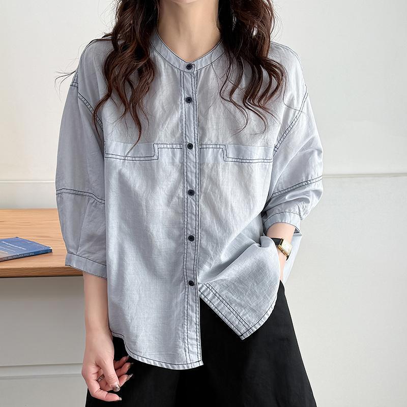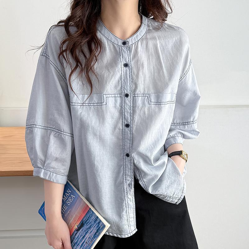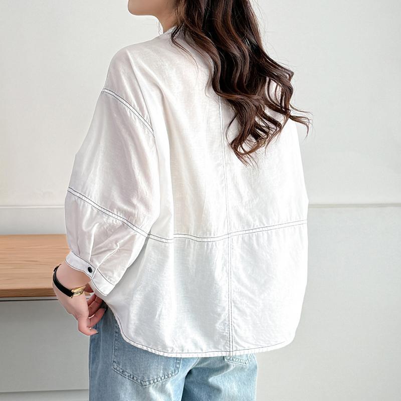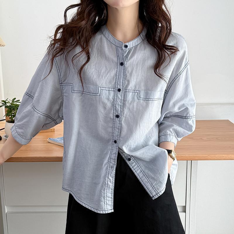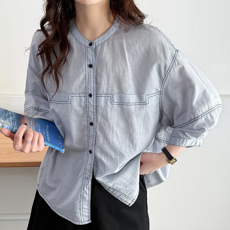 休閒寬鬆明線顯瘦中袖韓版時尚純棉襯衫