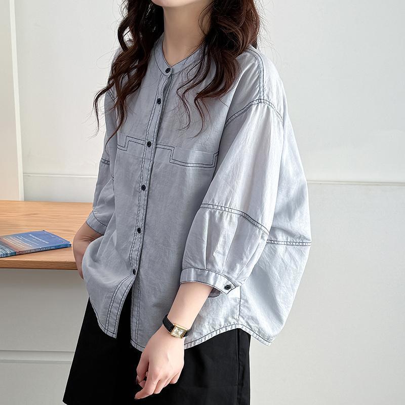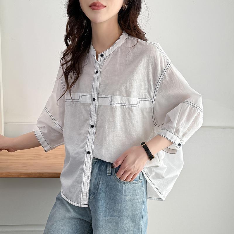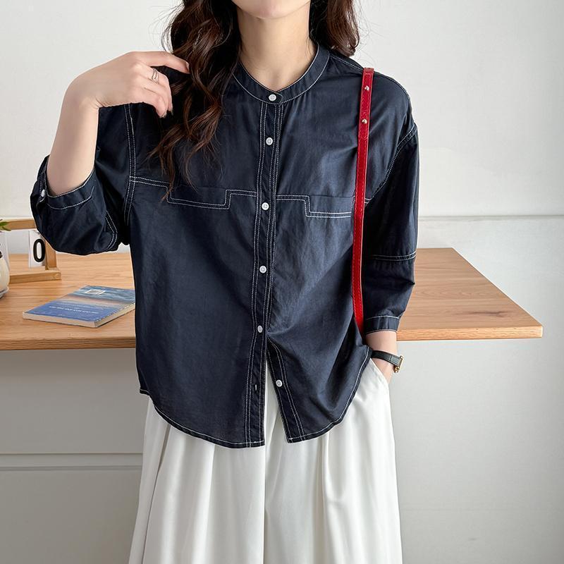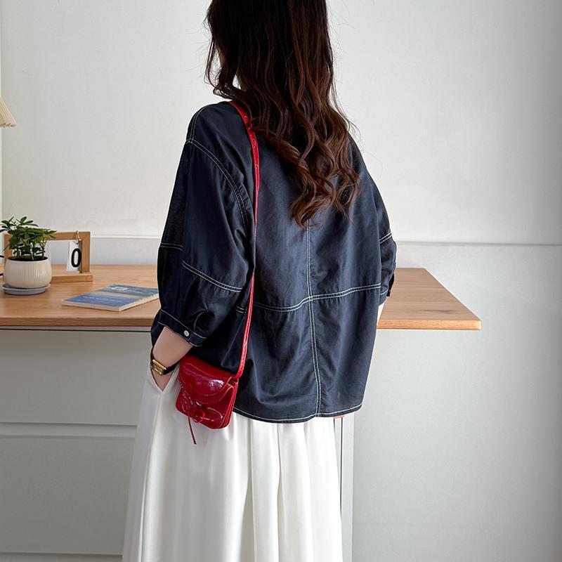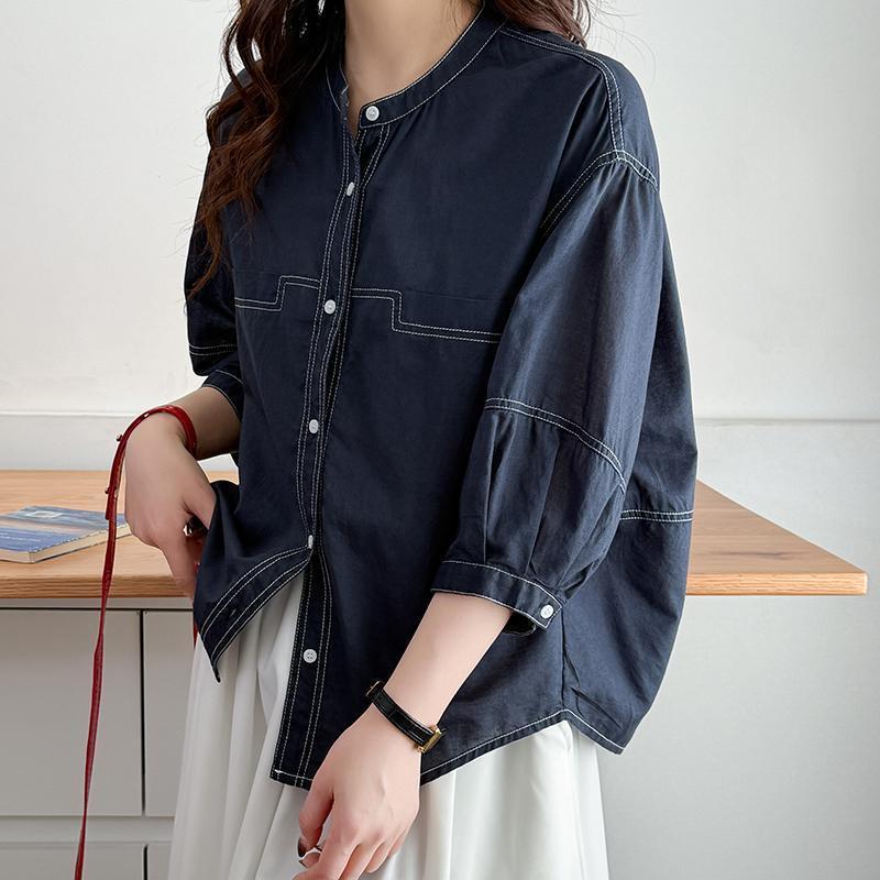 休閒寬鬆明線顯瘦中袖韓版時尚純棉襯衫