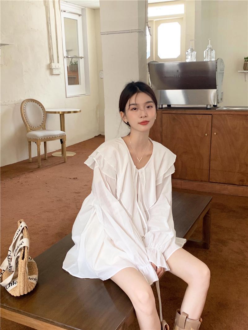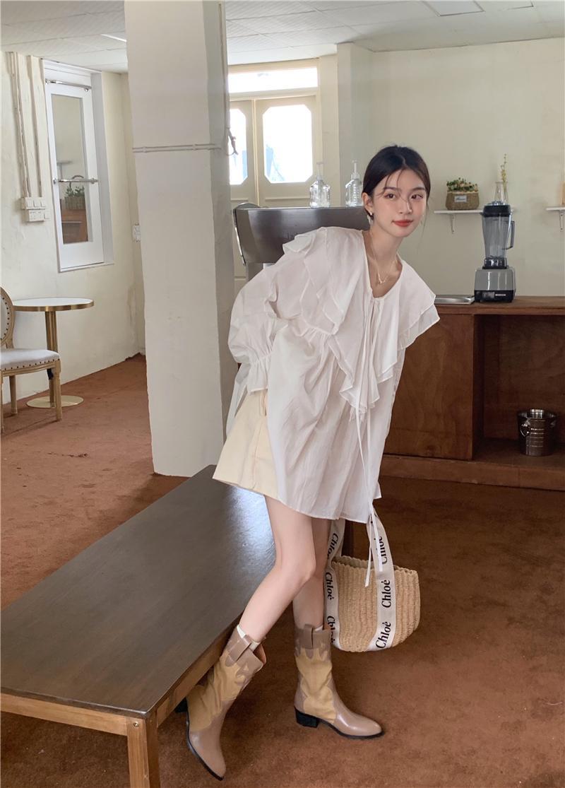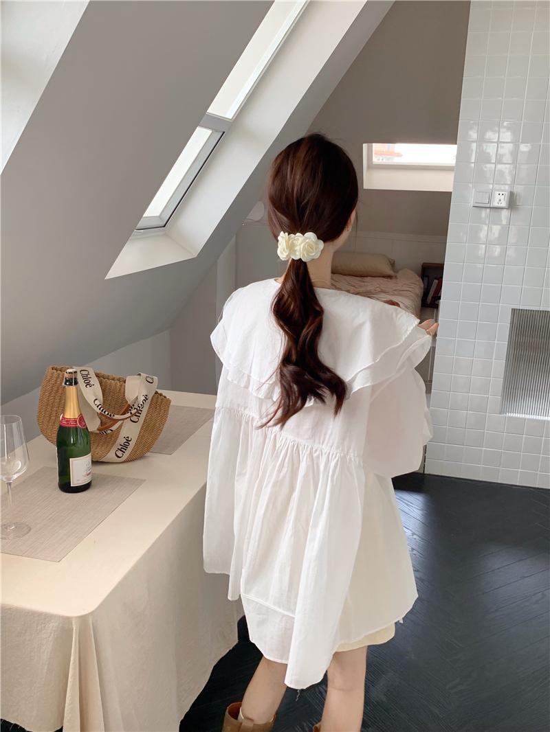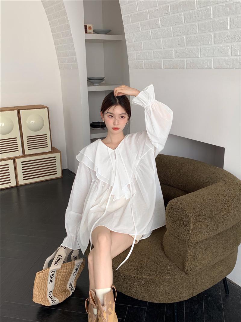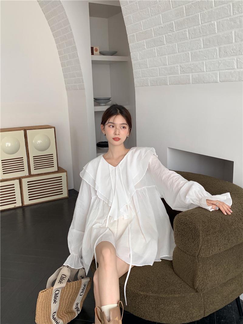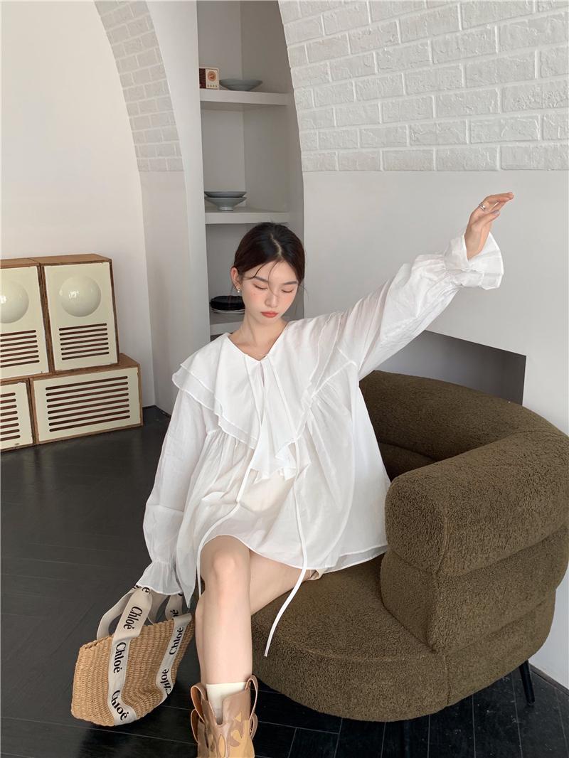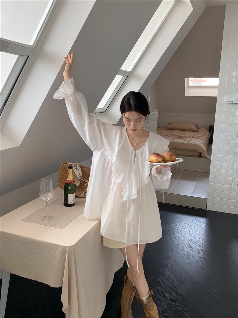 設計感防曬中長版型雙層領繫帶襯衫
