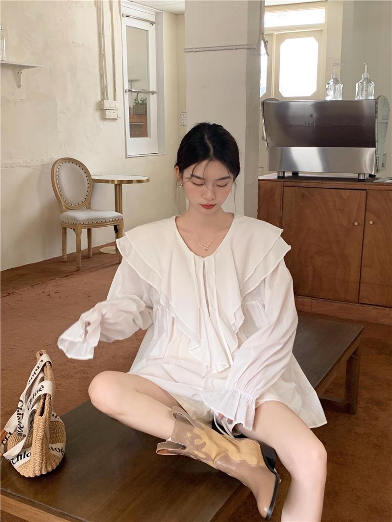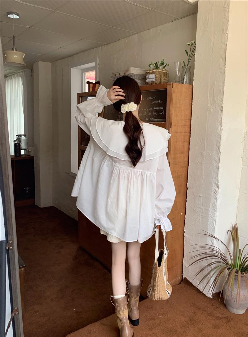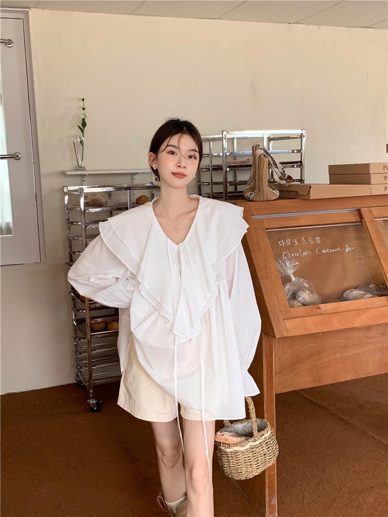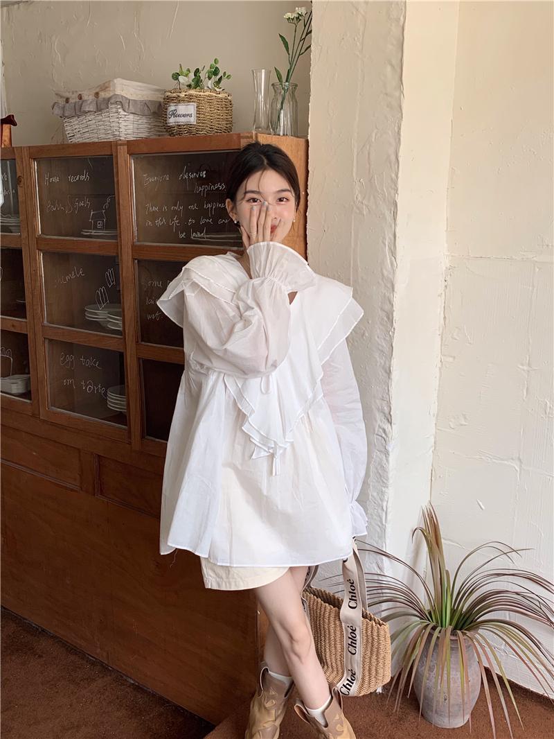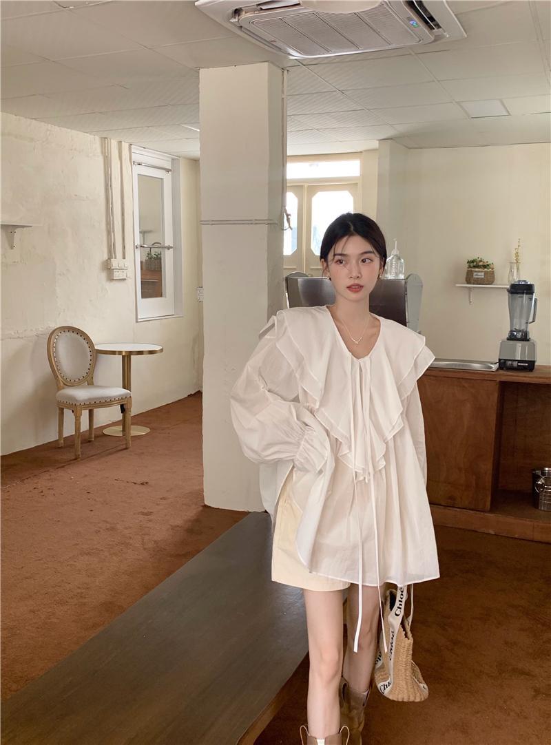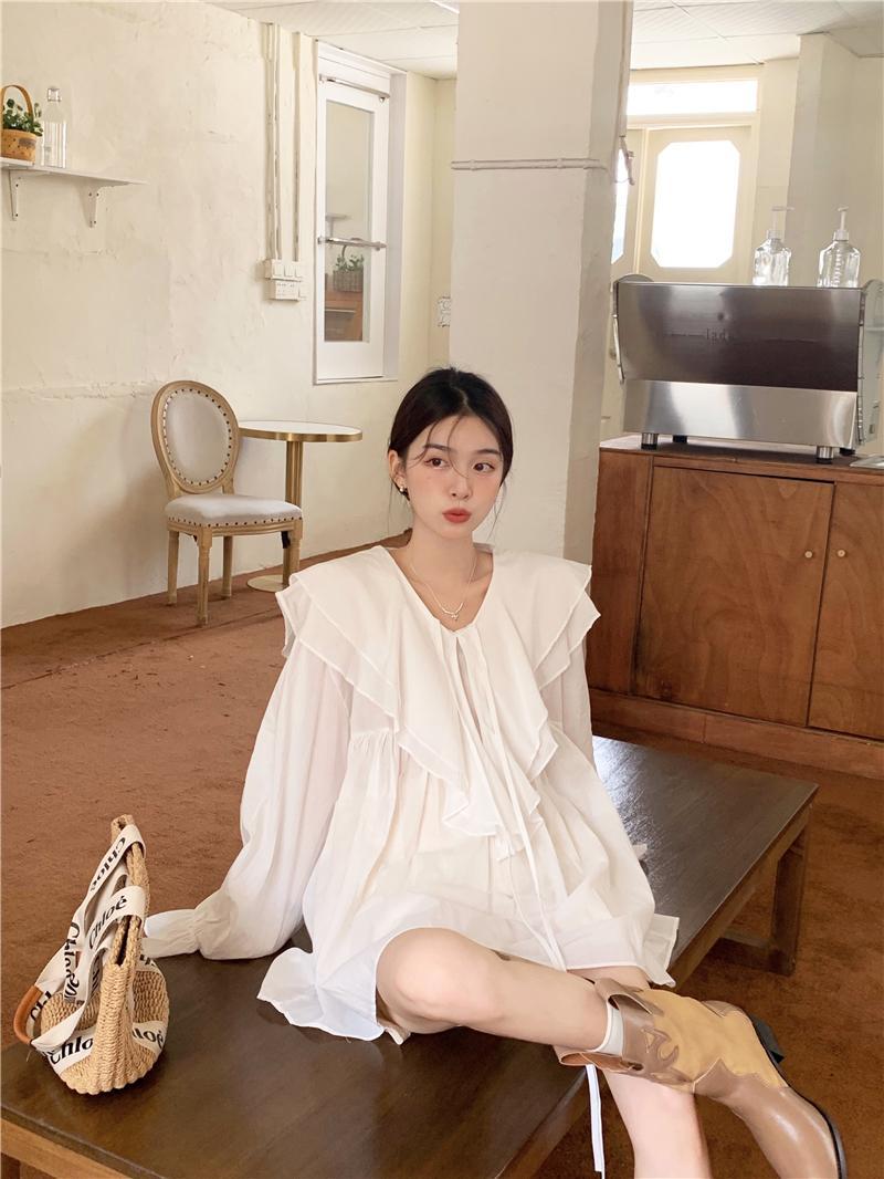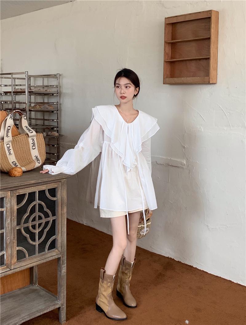 設計感防曬中長版型雙層領繫帶襯衫