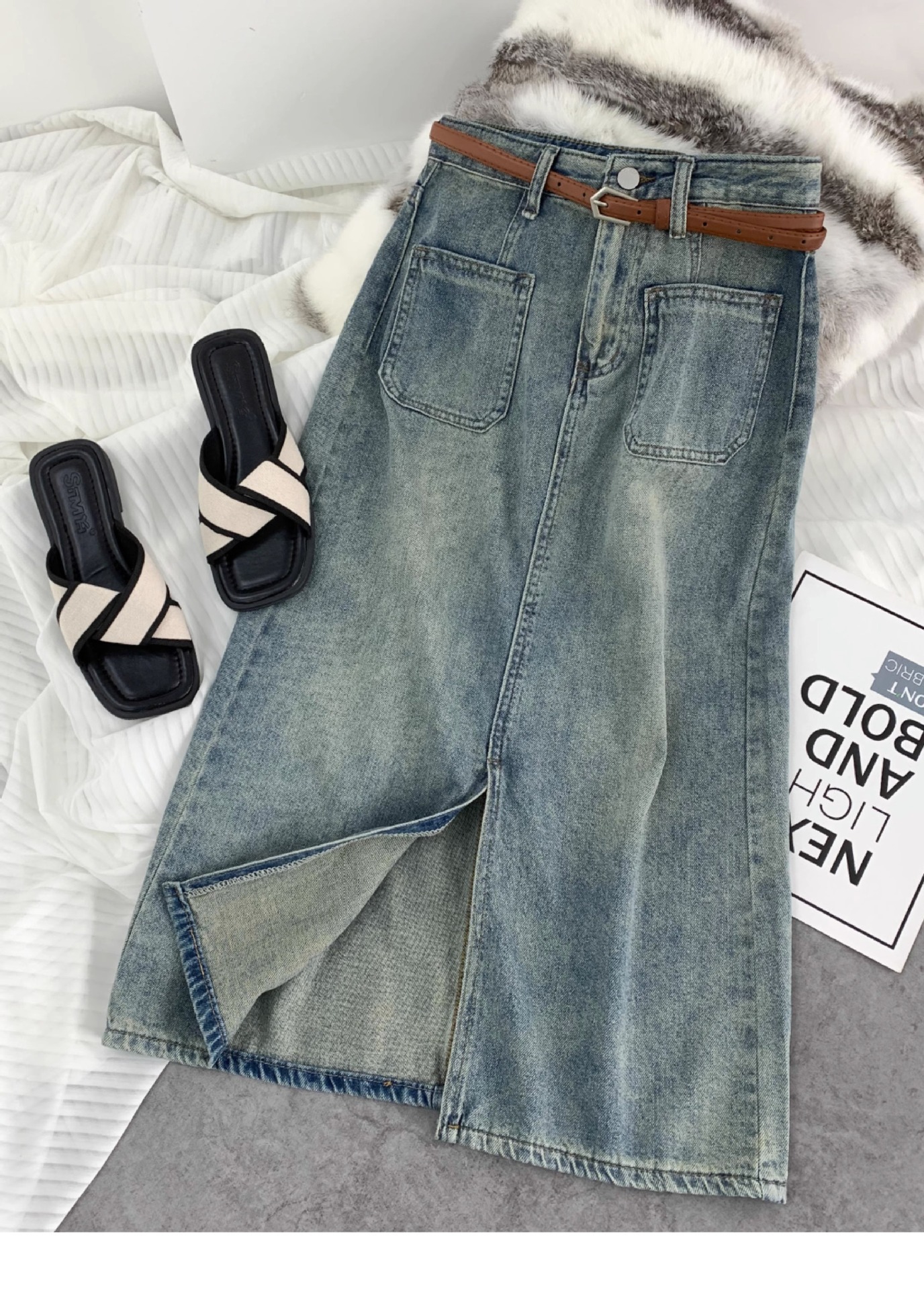 高腰大碼休閒A字顯瘦開叉牛仔半身裙