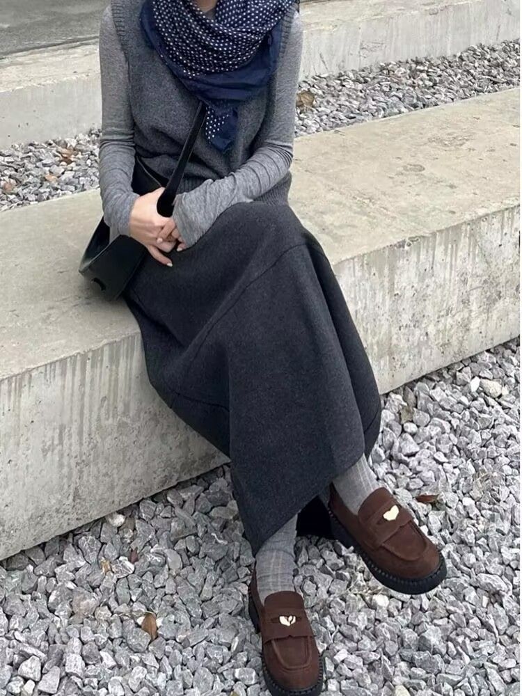 【整套】美拉德氛圍感針織衫+韓系短裙兩件套
