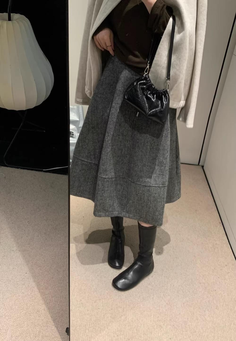 顯瘦寬鬆高腰百搭A字半身裙毛呢花苞裙