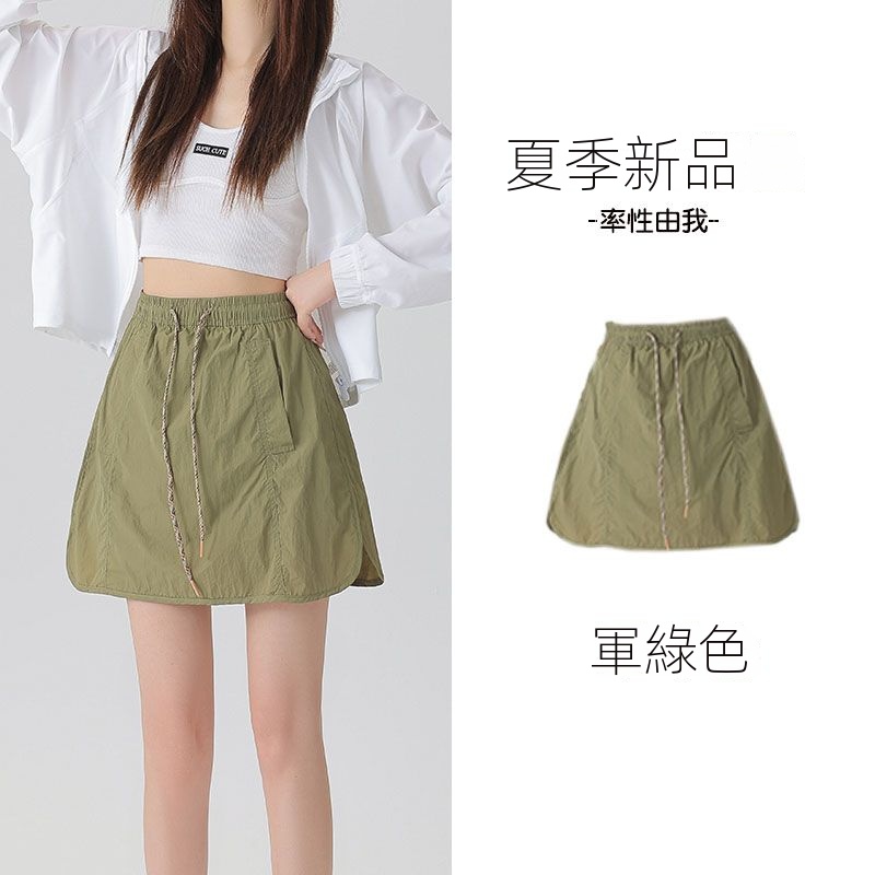 美式休閒運動寬鬆顯瘦鬆緊腰防走光工裝半身短裙