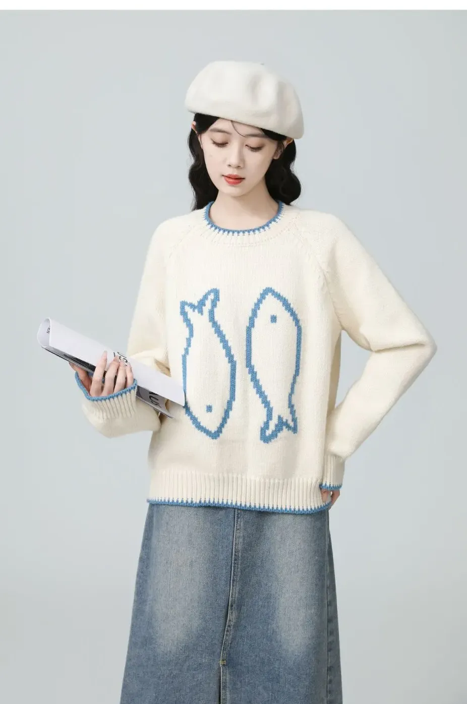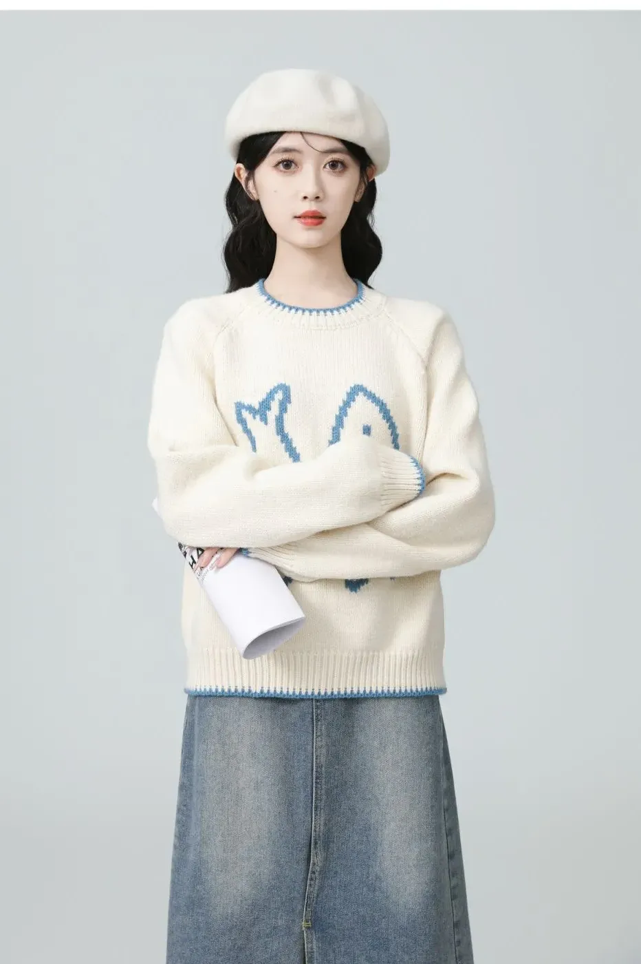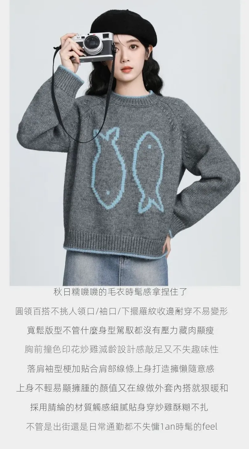 韓系卷边簡約慵懒风宽松顯瘦針織衫