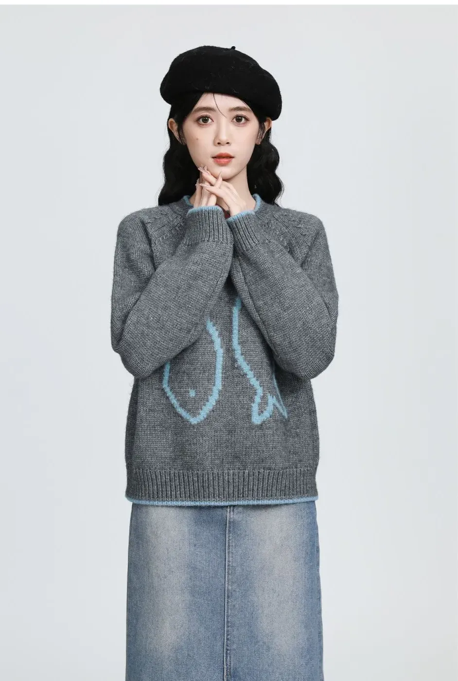 【限定款】卡通小馬提花減齡圓領針織衫