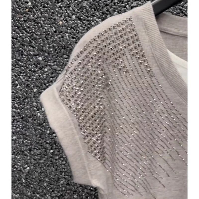 小香風氣質純色薄款釘珠針織背心