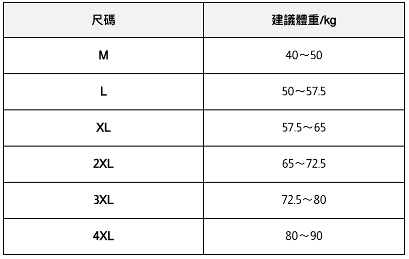 此處給出的參考尺寸表只是一個標準指南