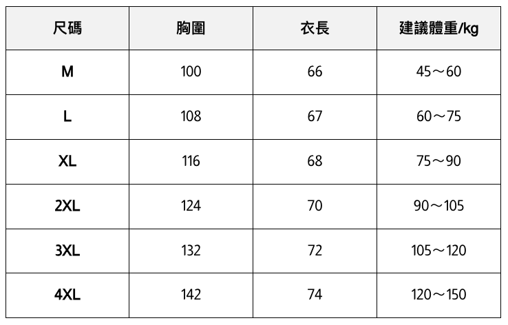 此處給出的參考尺寸表只是一個標準指南